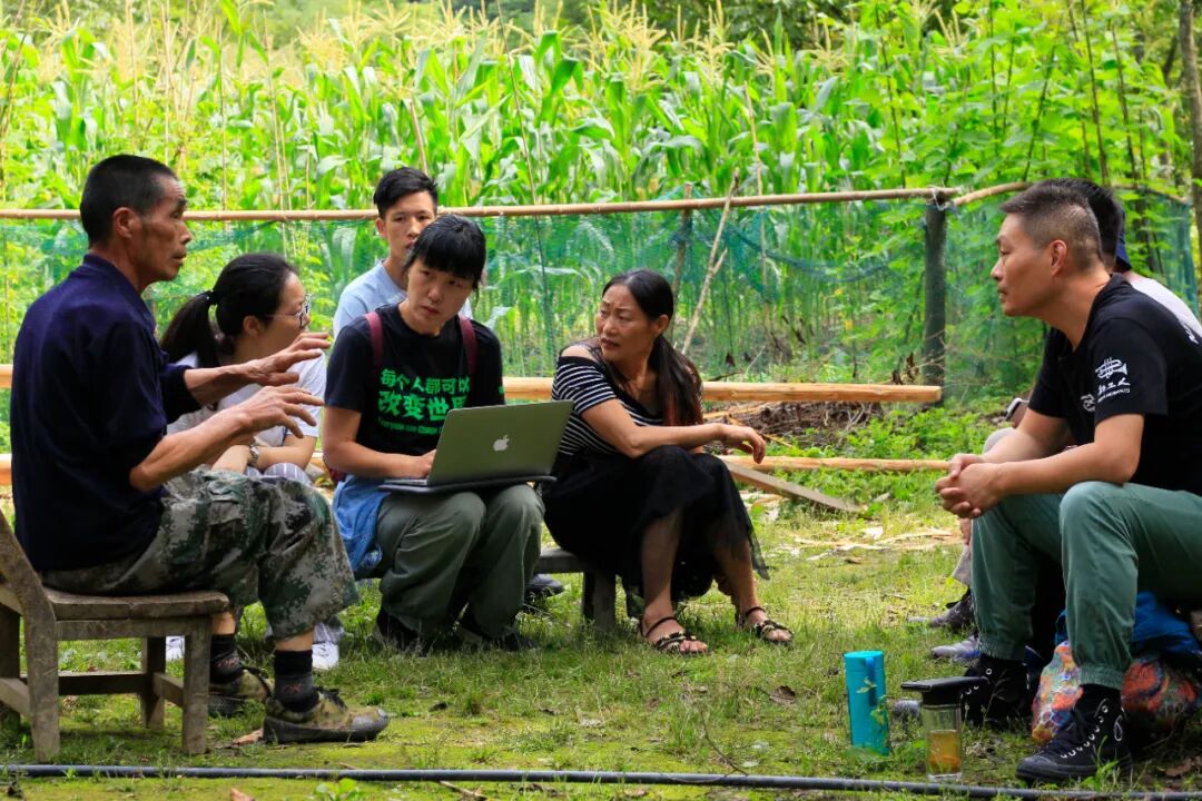 “如果让村民唱,就必须考虑村民愿不愿意唱,想唱什么,喜欢怎么唱。”孙恒反复说。既然是集体创作,就要形成多数人的共识。这是个微妙的过程,力量、知识、历史、文化等都会在其中发挥作用,有时候还会发生争论。主体意识被激发出来的时候,或许村民们自己都不知道。 在重庆市武隆区文凤村,讨论歌词阶段,因为前期大家特别能说,因此素材多,留哪个就成了大家甜蜜的负担。当时西南大学乡村振兴战略研究院的潘家恩教授也在现场,他表示喜欢“我在天池有树茶”一句,理由是武隆青茶很有名,而且也有新村民认养茶树的销售方式,“这一句能把新村民或者未来可能成为新村民的人的心声表达出来。”潘教授理由充分,但村民们似乎不同意教授的建议,听完后都没有吭声。 静默一阵之后,气氛又热烈起来。用什么代表文凤村合适?教授建议的青茶,还是梨花、米酒?抑或土豆、蜂蜜和菌子?一番谈论后,梨花、米酒和蜂蜜被保留下来,因为村民们觉着这三样给人的感觉是甜蜜蜜、美滋滋的。 当最后一句“留住青山是金山,凤凰飞在彩云间”敲定后,大家也经历了一次小小的涅槃一样,长舒一口气。可到了谱曲阶段,不同声音又出现了。每次孙恒到村里调研时,都会特别留意当地的民歌小调。此次创作,他建议用当地的“啰儿啰”试唱一下。会唱山歌的村民唱起来,大家跟着顺了一遍。孙恒本以为他的提议很好,大家也会拍手称赞。可没想到歌声一落,几位村民大声抗议:“我们坚决不用这个调!要用就用好听的调子唱!”孙恒(右一)和吕途(左三)在重庆市城口县龙田乡联丰村走访调研。 孙恒纳闷起来,工作坊间隙,明明大家有事没事都在哼唱“啰儿啰”啊,既然喜欢,为什么不用?后来,一位妇女小声说:“‘啰儿啰’里有很多‘风流歌’。” 孙恒恍然大悟!可是,不用这个,用当地什么调子来和现代创作融合呢?焦头烂额时,村民们你一言我一语中给了他灵感。原来当地有一种劳动号子,村里只有一位老人会唱,于是几个人一齐上门央求老人唱一唱。劳动了一辈子的老农民唱出来时,有力的曲调上挂满了岁月的痕迹,歌声辽阔苍劲,在场的人不自觉地唱和着。 在老人一句“呦呵——”,大家跟着一句“嘿咗——”中,《文凤之歌》在唱和中不断回响在村民的生活里。 村歌的每个词、每个调,都尊重农民的想法,强调村民是主人。北京大学新闻与传播学院教授张慧瑜曾经这样评价共创式村歌的形式:相比流行、小众的都市摇滚和民谣乐团,他们强调音乐创作、演出与农民产生互动;以文化、艺术为中介,用文艺的方式使得不可见的农民显影,传播劳动者最光荣、劳动者有尊严的价值理念;相比政府购买社会服务的公共文化模式,他们结合社区发展理念和群众文艺的传统,形塑以村民为主体的新乡村文化。“不仅是送文艺下乡或者给基层群众提供文艺享受,而且是通过集体创作‘村歌’的方式来塑造一种乡村文化的主体性。”“每个村庄都有自己的历史和文化,参与发掘村庄的价值让人兴奋。”村歌团队每到村里,都会深入走访调研。“脱口而出”“张口就来”“现成的”,回忆起一起创作词曲的过程,孙恒经常被村民们丰富的语言、故事和村庄的历史文化感动。