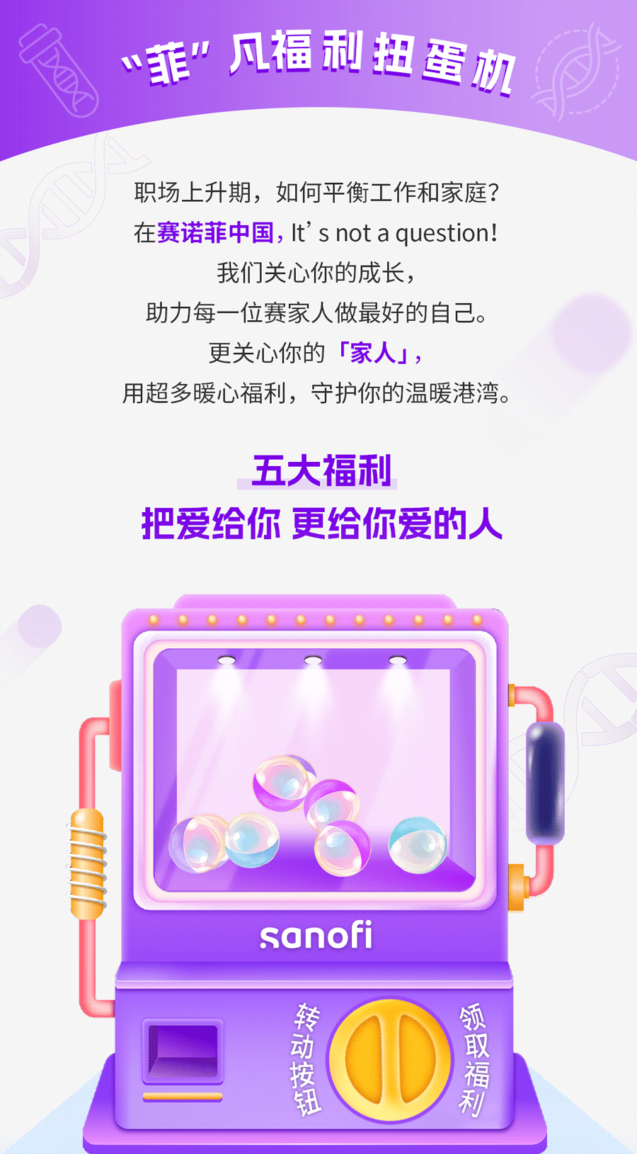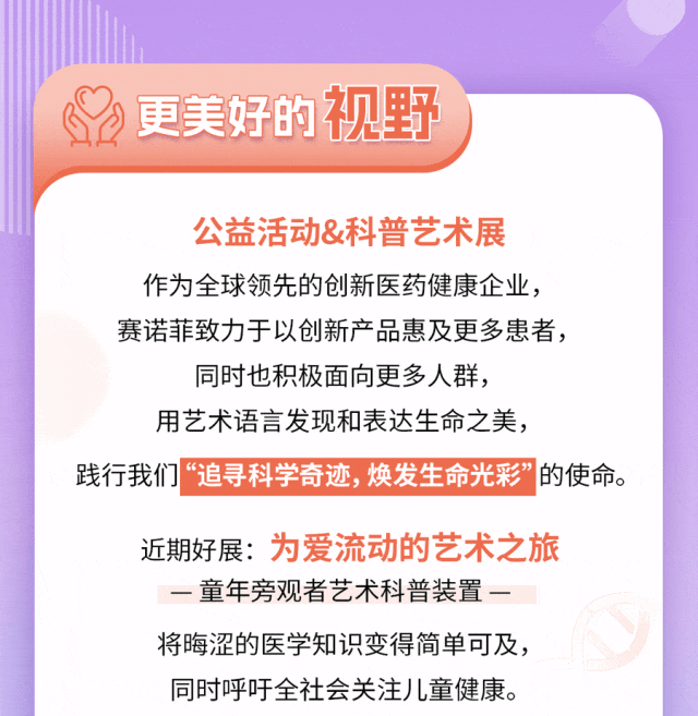 赛诺菲是一家全球领先的创新医药健康企业。我们的使命是追寻科学奇迹,焕发生命光彩。赛诺菲的足迹遍及全球100多个国家,致力于变革医疗实践,将不可能变为可能。我们为世界各地的人们提供潜在改变生活的医疗健康解决方案以及预防可致命疾病的疫苗,同时将可持续和社会责任置于我们雄伟战略的核心。