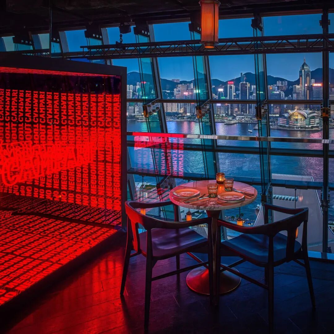 餐厅自带优雅的意式风情,满布的红丝绒帷幕、水晶灯、摩登霓虹灯及镜面装饰,让你有种步入了经典意大利电影中的感觉。跨年夜当晚,更有现场 DJ 的音乐节奏,品尝美味之余,还能欣赏维港景致和烟花盛景。