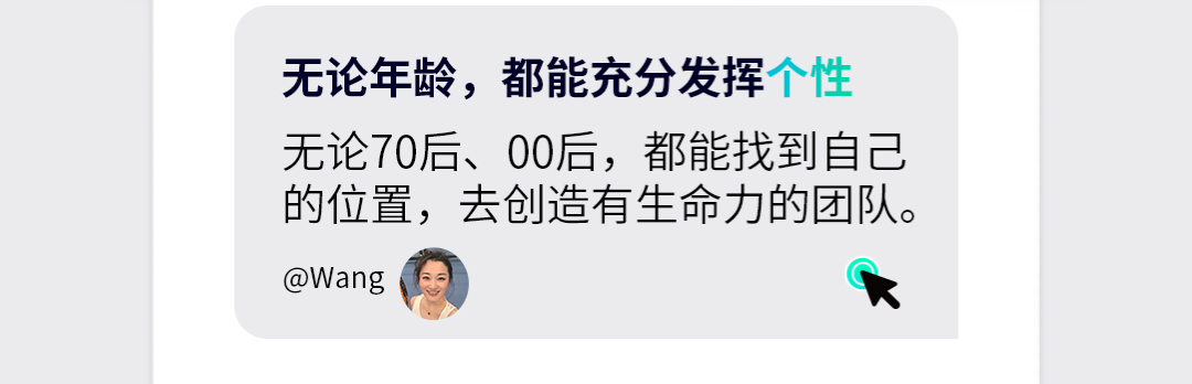 无论70后、00后,都能找到自己的位置,去创造有生命力的团队。