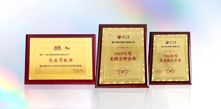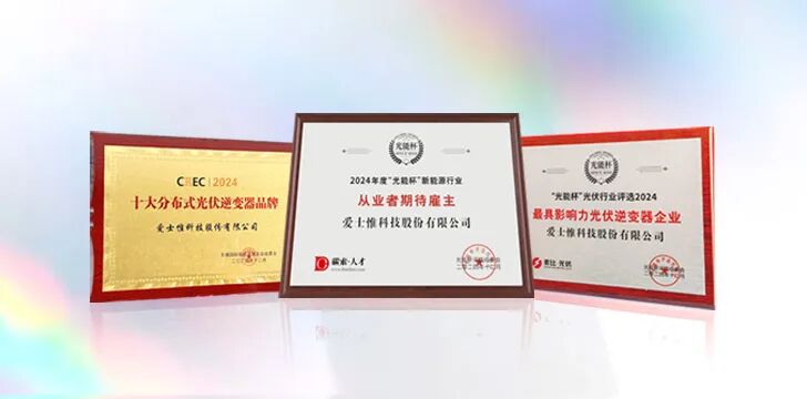 与此同时,这个12月,爱士惟也收获了来自媒体与行业协会层面的众多鼓舞与支持。第十六届无锡国际新能源展览会(CREC2024)上,爱士惟获得了由无锡国际新能源展览会组委会颁发的中国十大分布式光伏逆变器品牌奖项;在由索比光伏网举办的2024年度“光能杯”上,爱士惟一举斩获2024年度最具影响力光伏逆变器企业、2024年度“光能杯”新能源行业从业者期待雇主两大奖项。不仅如此,年末之际,爱士惟还先后获得了由中国光伏行业协会颁发的突出贡献奖,以及由绿色能源产业发展促进会颁发的2024年度光储金牌企业奖、以及2024年度优秀成员企业奖。