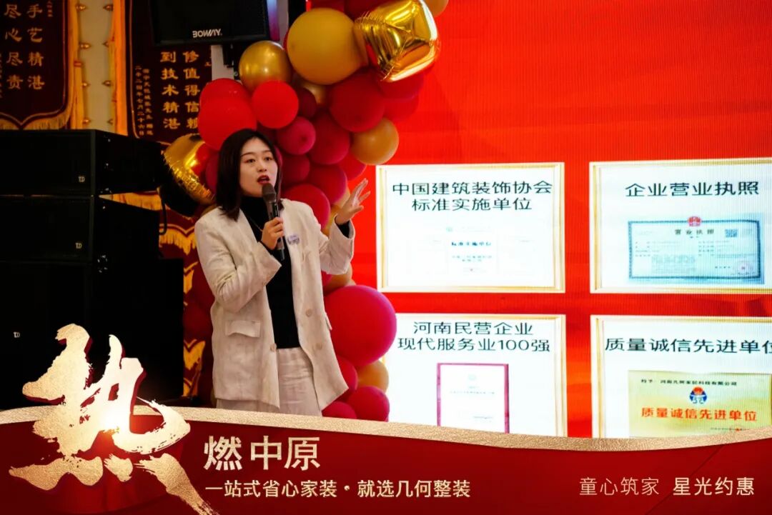几何整装总经理李恩娟上台致辞,深刻阐述了公司的核心理念,对各位业主详细介绍了几何整装本次活动的各项优惠减免,省到底!为在场嘉宾提供现代装修家居的崭新选择与无限可能。