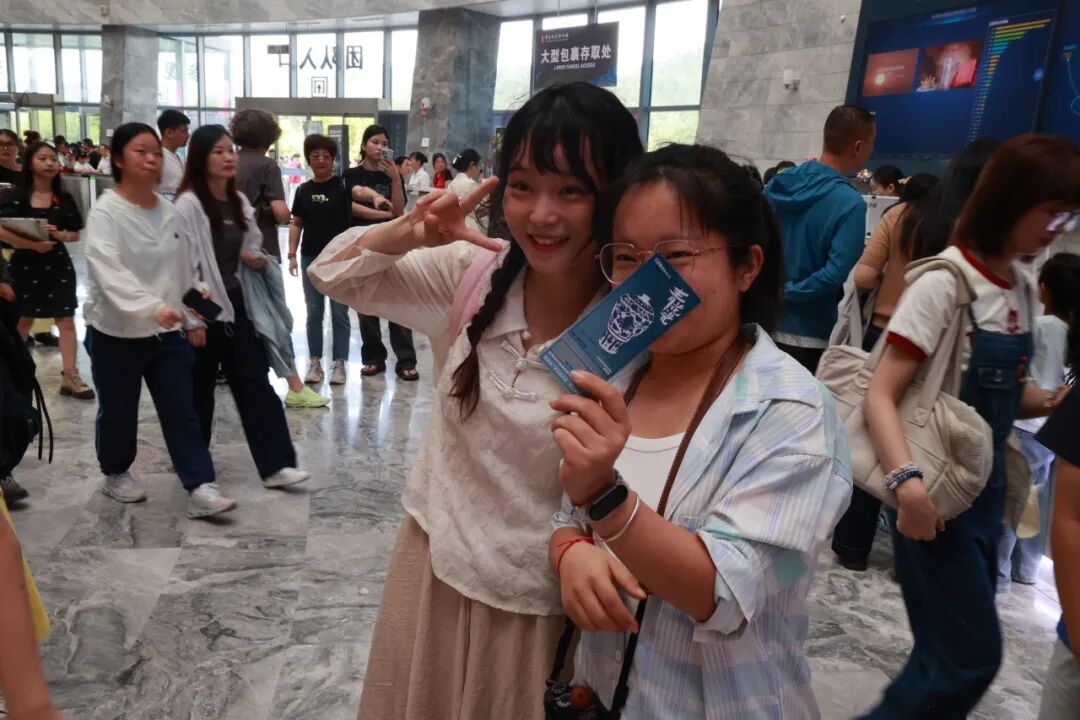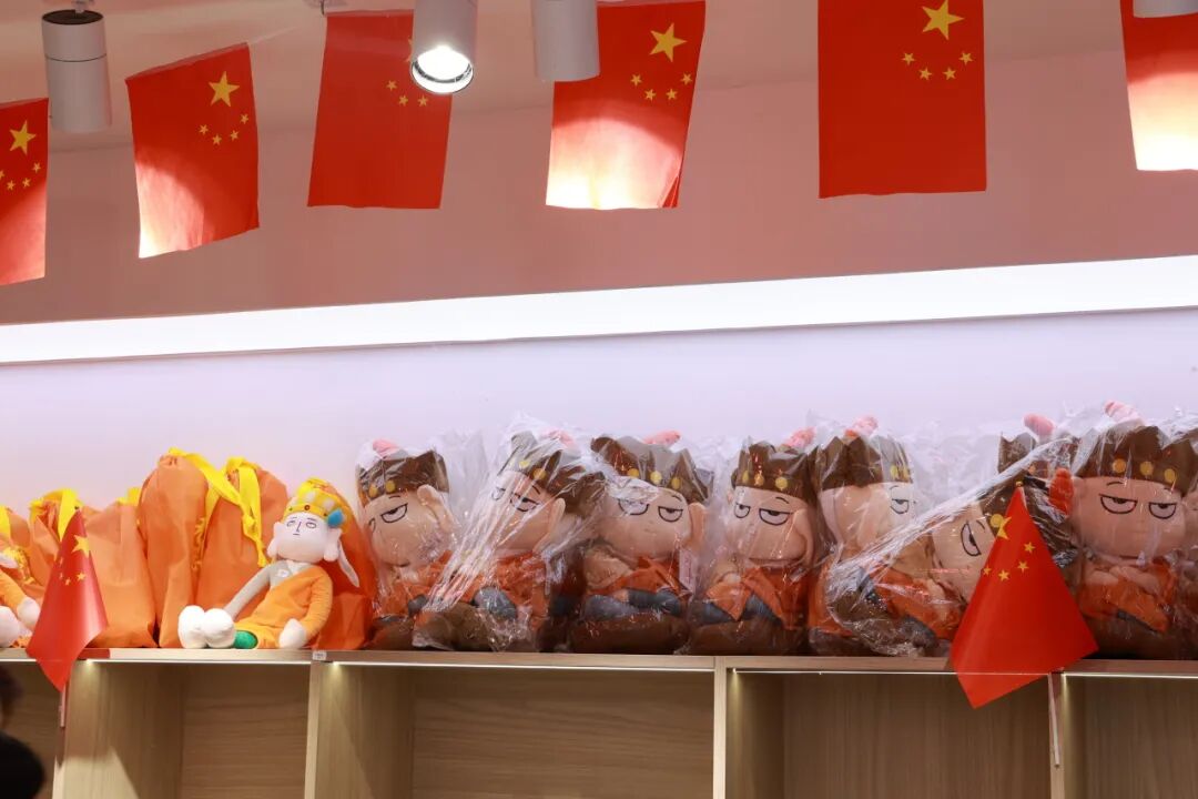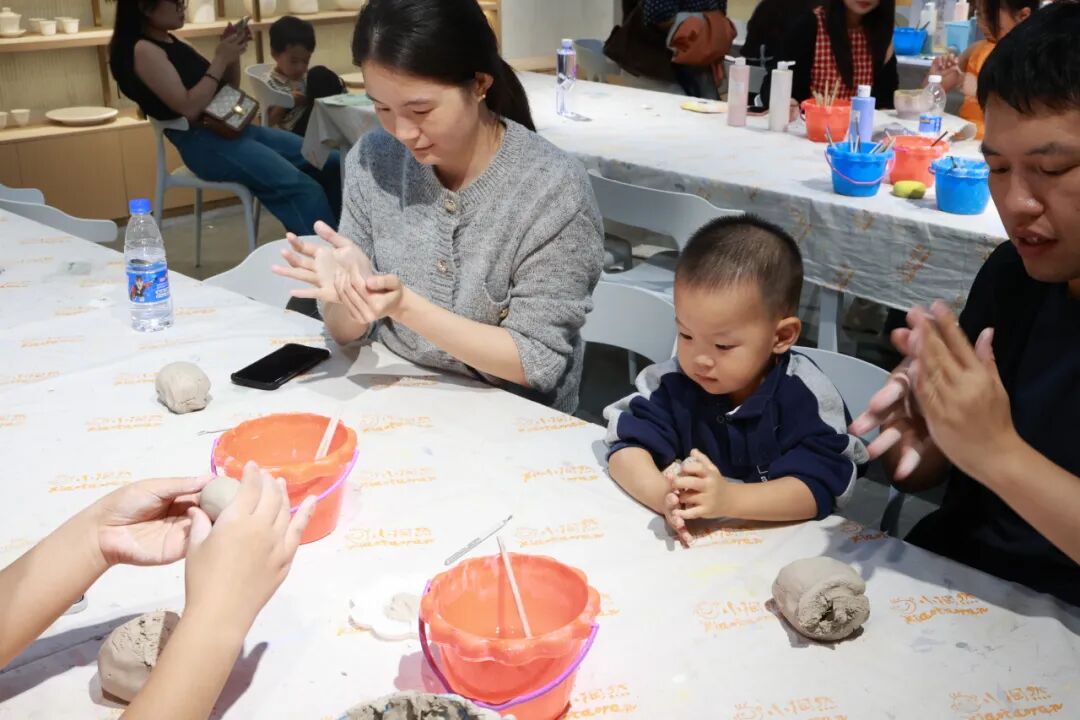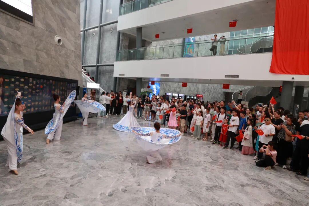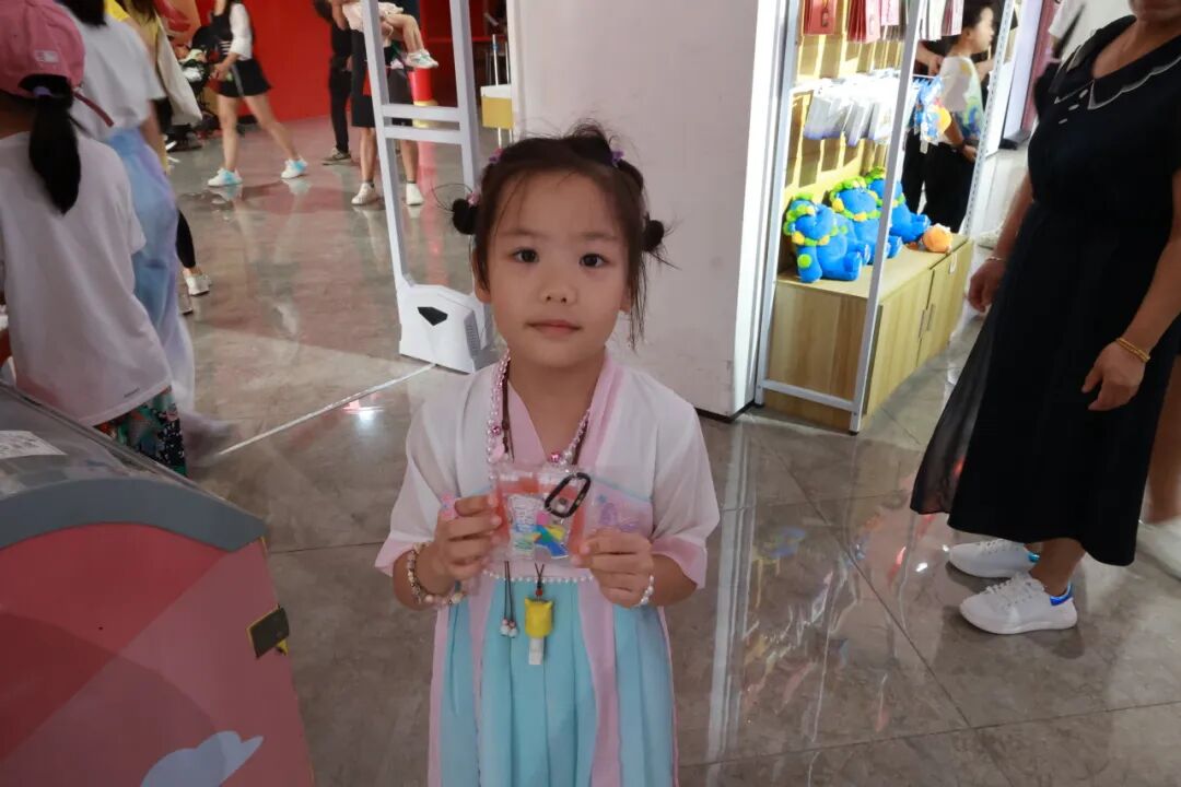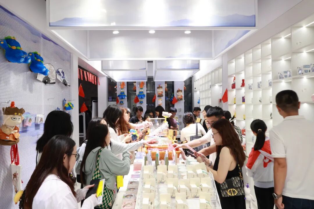游客们体验泥塑、漆扇、扎染等传统手工艺,身着古典服饰,手持文创棒棒糖穿梭在展厅之中,感受中华文化的传承与魅力。