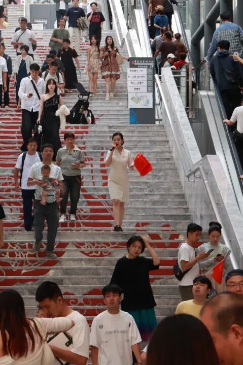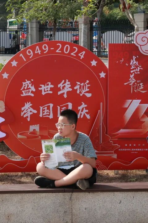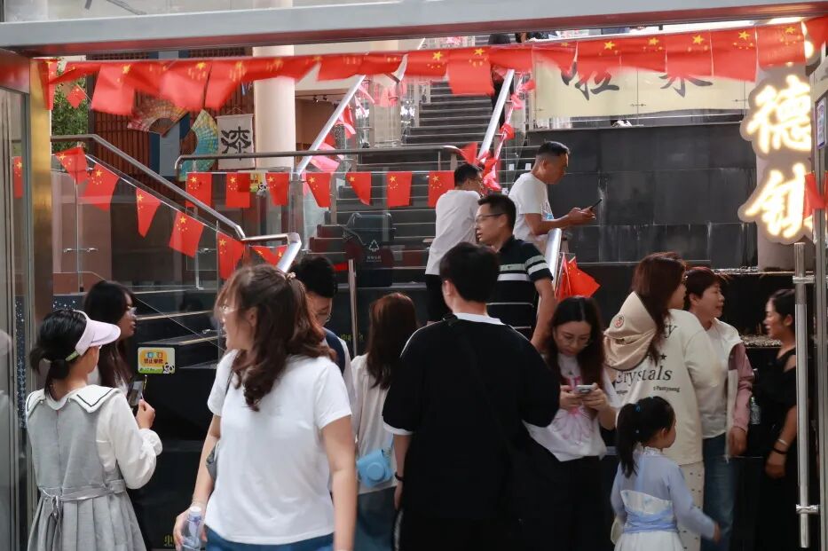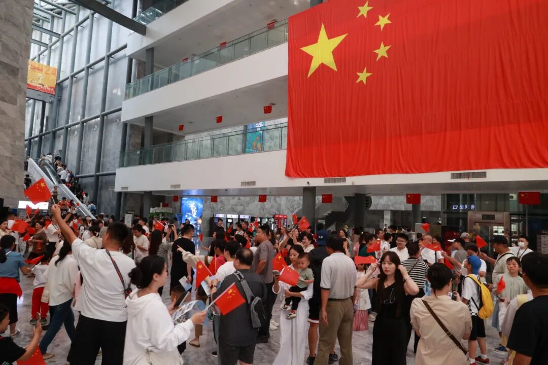 “举国同庆·盛事华诞”的巨型垂幅、随风飘扬的五星红旗、处处可见的景博打卡点……今天的景博处处洋溢着浓厚的国庆节氛围。