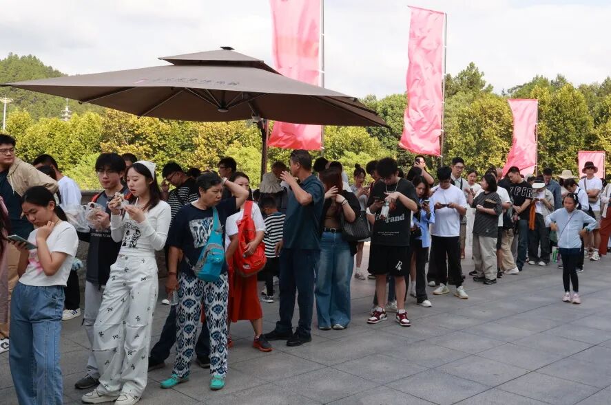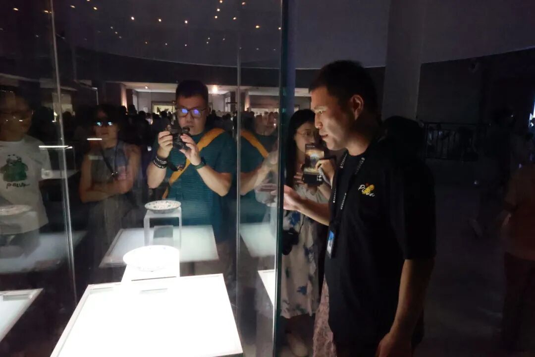 10月1日早上9点,国庆“氛围感”拉满的景德镇中国陶瓷博物馆迎来了第一批游客。他们迫不及待地涌入馆内,融入国庆节日的喜庆氛围中,打卡拍照,观看展览,享受景博精心为他们准备的12小时文化盛宴。