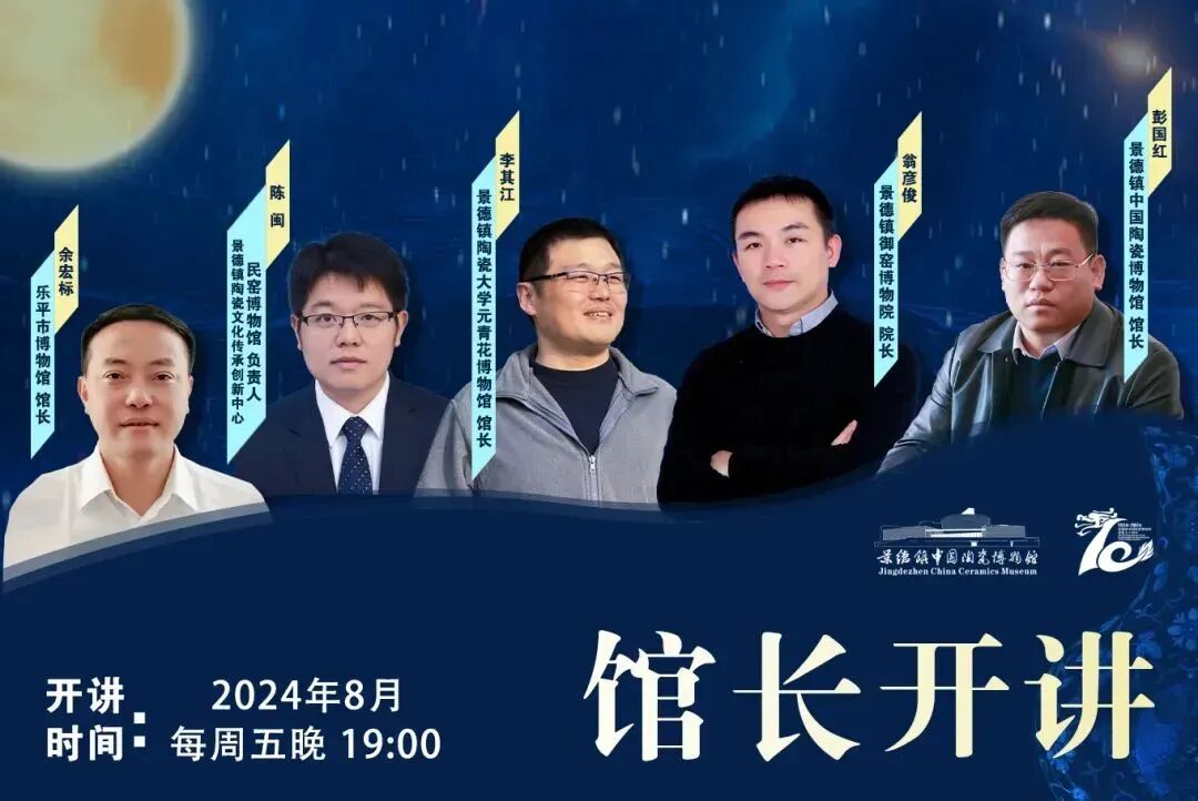 在2024年的“博物馆之夜”,我馆隆重推出“馆长开讲”主题活动。分别邀请乐平市博物馆馆长余宏标主讲《赣鄱青韵——唐代南窑陶瓷文化简述》,景德镇陶瓷文化传承创新中心民窑博物馆负责人陈闽主讲《景德镇湖田窑的历史背景》,景德镇陶瓷大学元青花博物馆馆长李其江主讲《元代青花瓷赏析》,景德镇御窑博物院院长翁彦俊主讲《明代景德镇御窑陶瓷赏析》,景德镇中国陶瓷博物馆馆长彭国红主讲《清代至民国陶瓷赏析》。