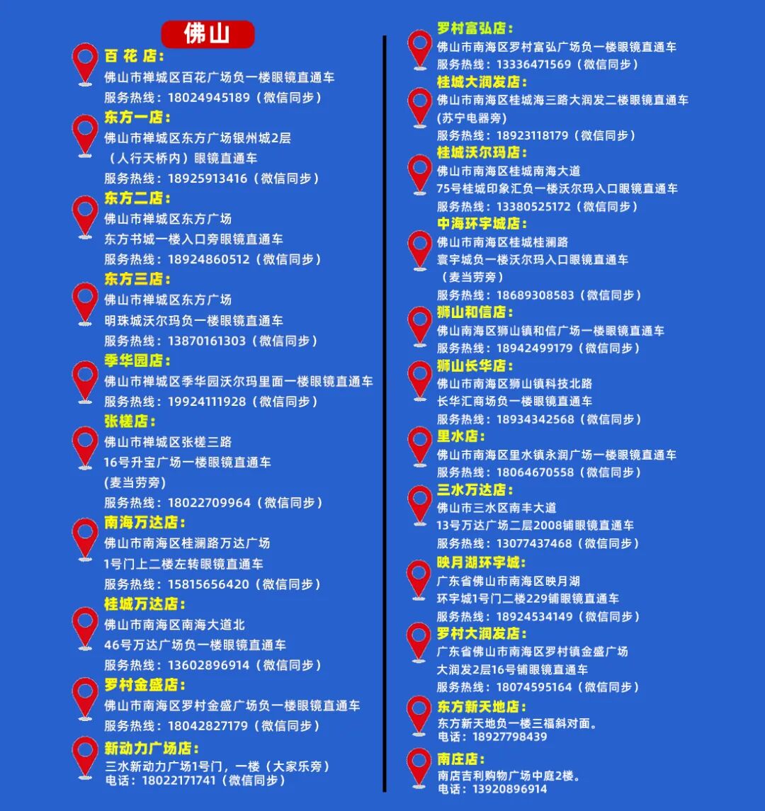注:佛山所有门店每人限领取一副、不能重复参加!最终解释权归门店所有