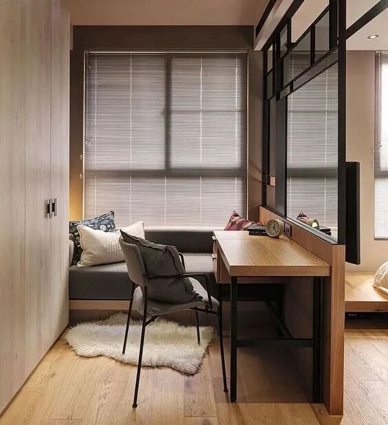 不想铺超大软垫,选用用小垫,青睐木质的温润,采用极简木质饰面的做法,与室内其他元素形成对比或呼应。