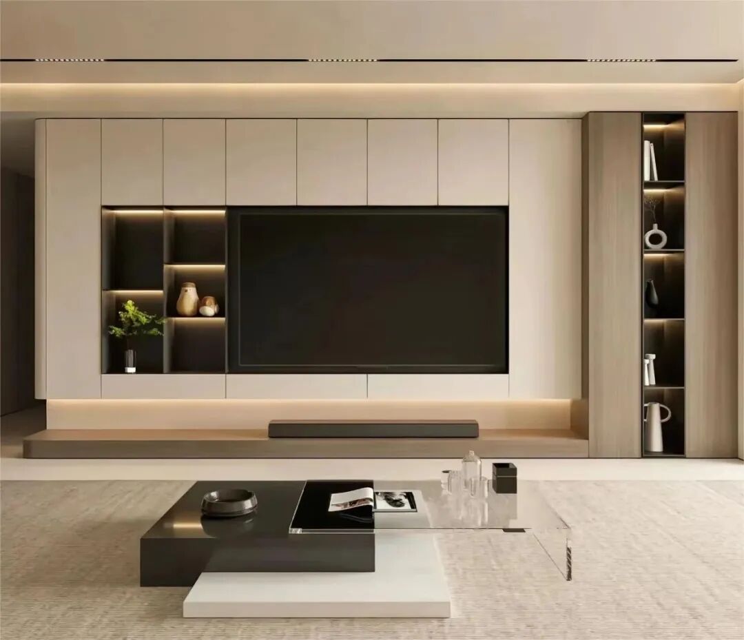极简风格,以"简"为核心,将设计元素、家具简化至极,色彩上,偏好无彩色系和冷色调,材质选择上,现代极简风格倾向于使用乳胶漆、石材、玻璃、木饰面、格栅和金属等,增强空间的现代感,常采用无主灯设计、嵌入式踢脚线、隐形柜门等,以达到空间的极致简约。符合当下许多年轻人的生活态度和追求。