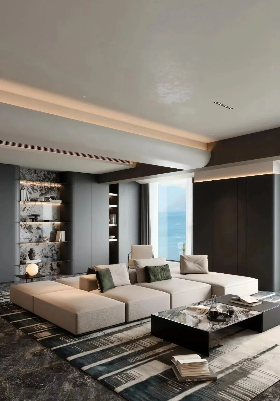 现代风格的一种,追求低调奢华,简约精致,常被许多商务人士喜欢。色彩以黑白灰为主,材质选择大理石、木饰面、金属等显贵材质。每一个细节都经过精心挑选和搭配,展现出精致和考究。同时很侧重灯光的使用。