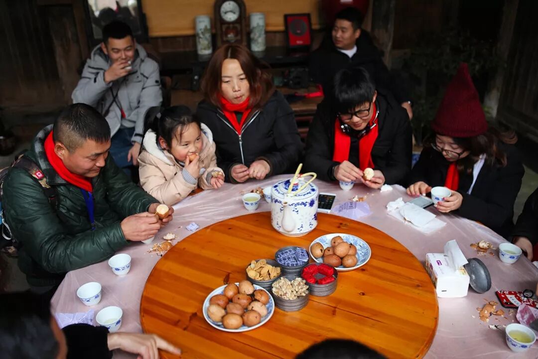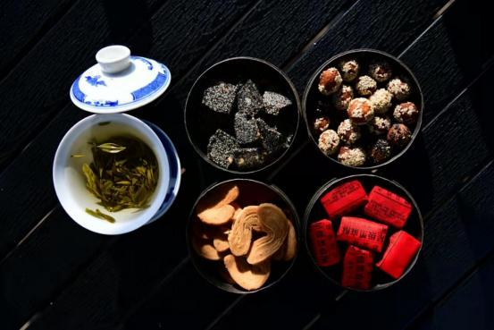 春节是节中之首,在黄山黟县,“吃茶”是最重要的年俗活动,锡格内放上冻米糖、千张酥、顶市酥、寸金糖等徽州特色小吃茶点,再配上一杯毛峰茶和一盘热腾腾的茶叶蛋,这就叫吃锡格子茶。