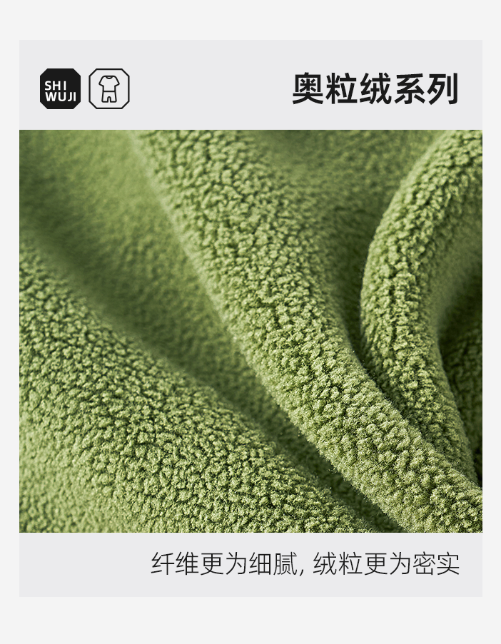 奥粒绒作为一种新兴的绒感面料,因其细腻柔糯的质地,近年来深受大众喜爱。相较于其他厚绒面料,奥粒绒的纤维更为细小,绒质更为密实,触感软软糯糯却很平滑,贴肤柔和而无刺痒感,宛如冬天里的小太阳,暖得很温和。
