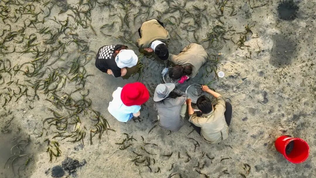 图:厦门大学BLUE-CARE项目组在野外开展海草床蓝碳监测工作