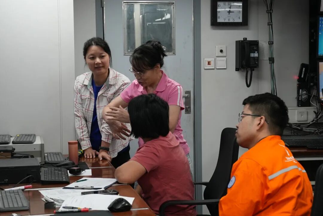 培训航次与台风“摩羯”不期而遇,导师凭借经验,与学员们在航次开始之前就做好了评估与备案,并在航次期间根据天气变化多次调整应急方案。为期4天的航次期间,学员们根据培训方案轮替担任执行首席,在台风影响下坚持完成3个站位10次作业。