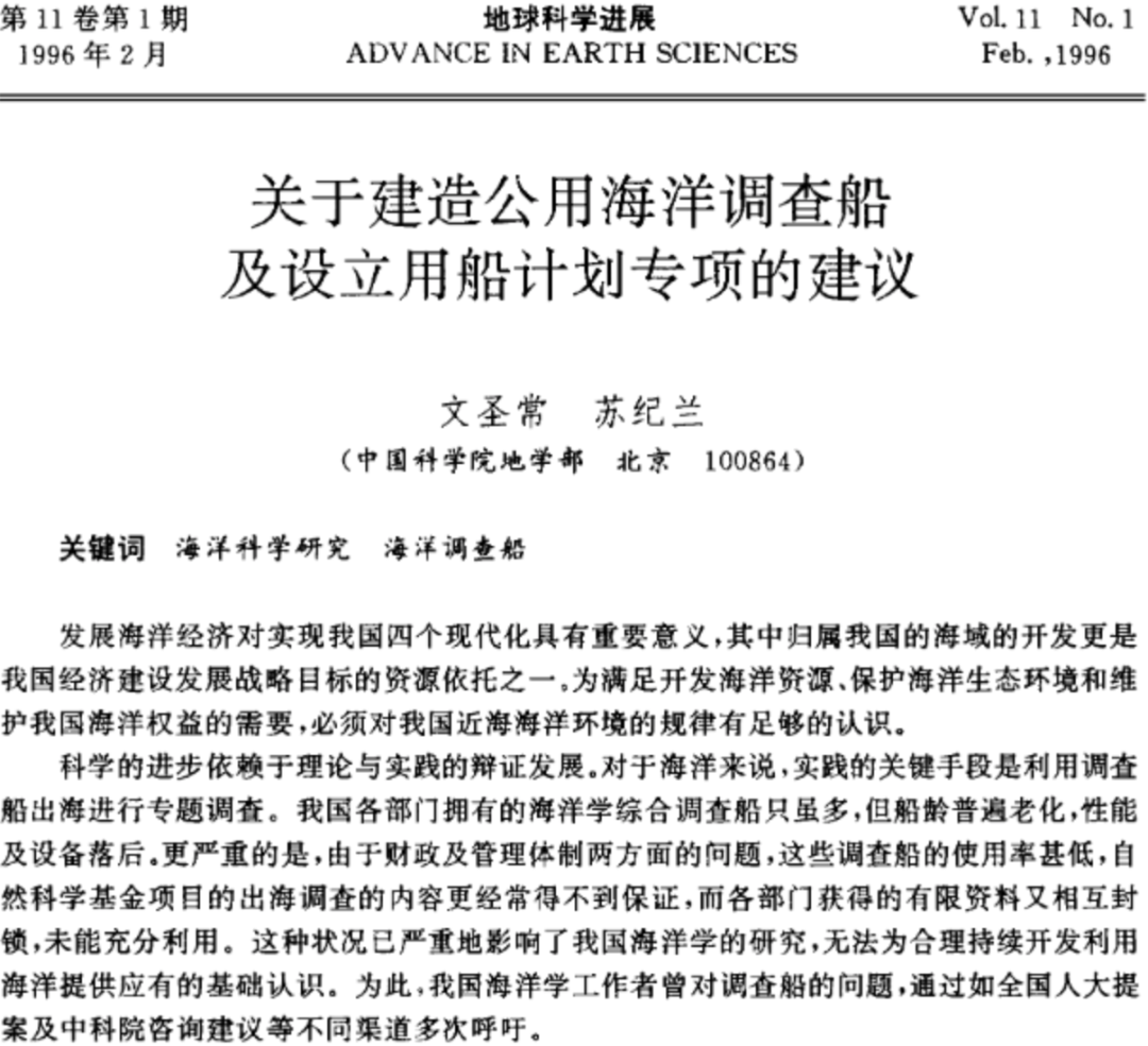 为了满足科学考察的广泛需求,二十多年前,海洋学界的院士及知名科学家通过公开撰文向中国科学院和基金委) 提出改进建议,同时向全国人大撰写提案,呼吁开展海洋调查航次共享计划。