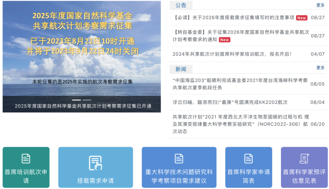 “共享航次计划”全称为“国家自然科学基金项目海洋科学调查船时费专款”项目,即“国家自然科学基金共享航次计划”,由国家自然科学基金委员会自2009年启动。