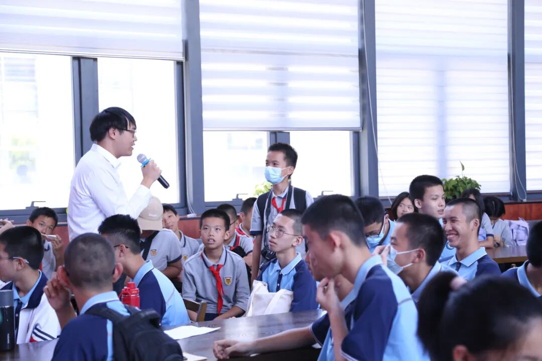 海洋讲师团邀请了来自自然资源部第三海洋研究所的董西洋研究员及他的两位研究生廖静、李程彭,他们将自己科考经历和研究成果分享给了中学生们。他们展示科研仪器进入深海捕捉到的冷泉热液的具体影像,以及四周围绕的依靠细菌为食的奇特生物,揭秘了生命在极端环境中存在的原因。是对科学问题的执着追求和无限靠近正确答案的魅力,引导着海洋讲师团的研究员和科学家们投身海洋、探索海洋。