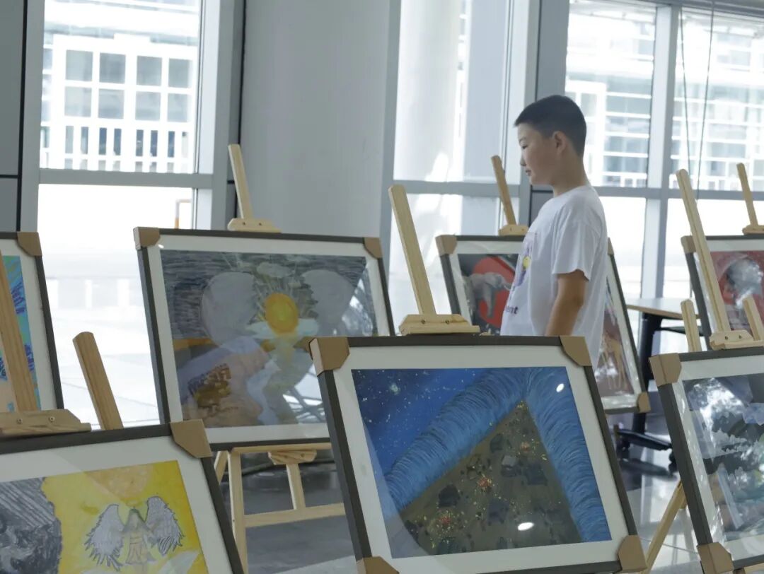 现场展出的中学生手绘作品中有极富想象力的动物拼贴画,色彩鲜艳的极端气候宣传画以及配色丰富的童趣幻想画等。
