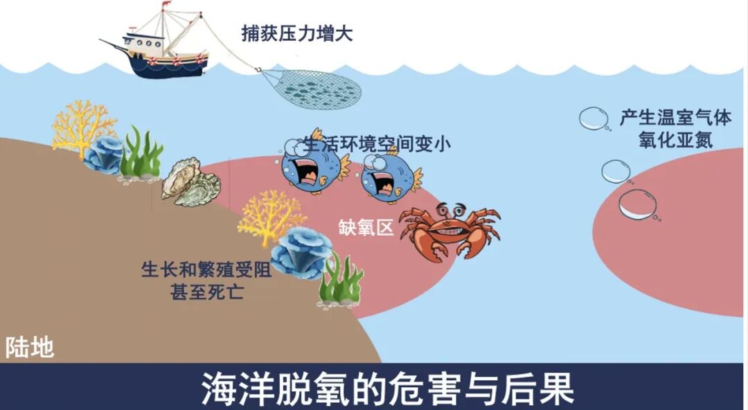 陈洪梅老师介绍了全球变化背景下海洋的“呼吸”。她从“氧气是怎么产生的”这一问题,引导同学们进行思考。并解释为什么全球变暖和河口富营养化是导致海洋脱氧的主要原因。