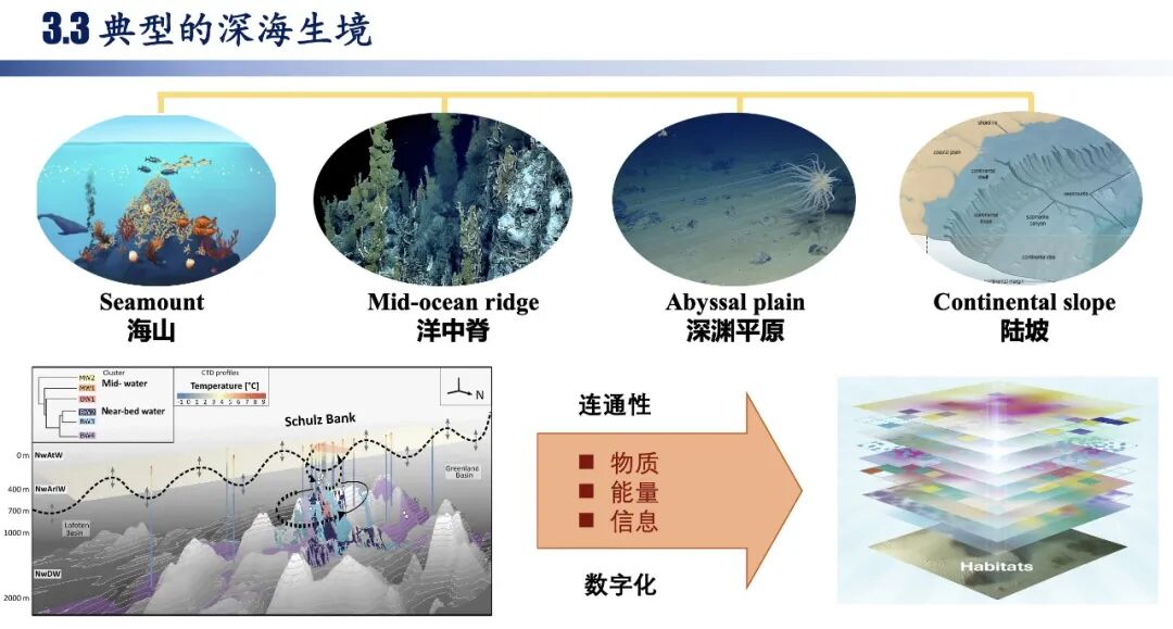 王鹏斌老师介绍了易受人类活动和全球变化影响的4类深海生境——海山、洋中脊、陆坡和深海平原。同时详细讲述了“数字化深海典型生境”大科学计划。