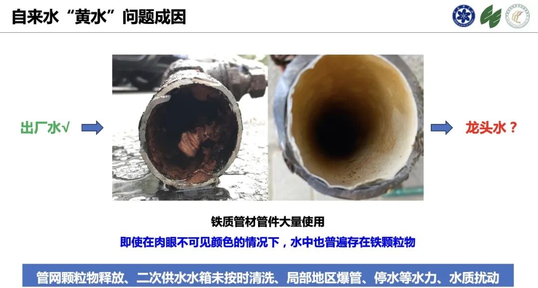 庄媛老师为大家介绍了饮用水的典型水质问题与饮用水水质净化背后的科学家故事,讲述了现代生活中的饮用水在传输过程中产生了“源清流浊”的黄水现象,这其实与自来水管网颗粒物释放、水箱清洗不及时等原因密切相关。