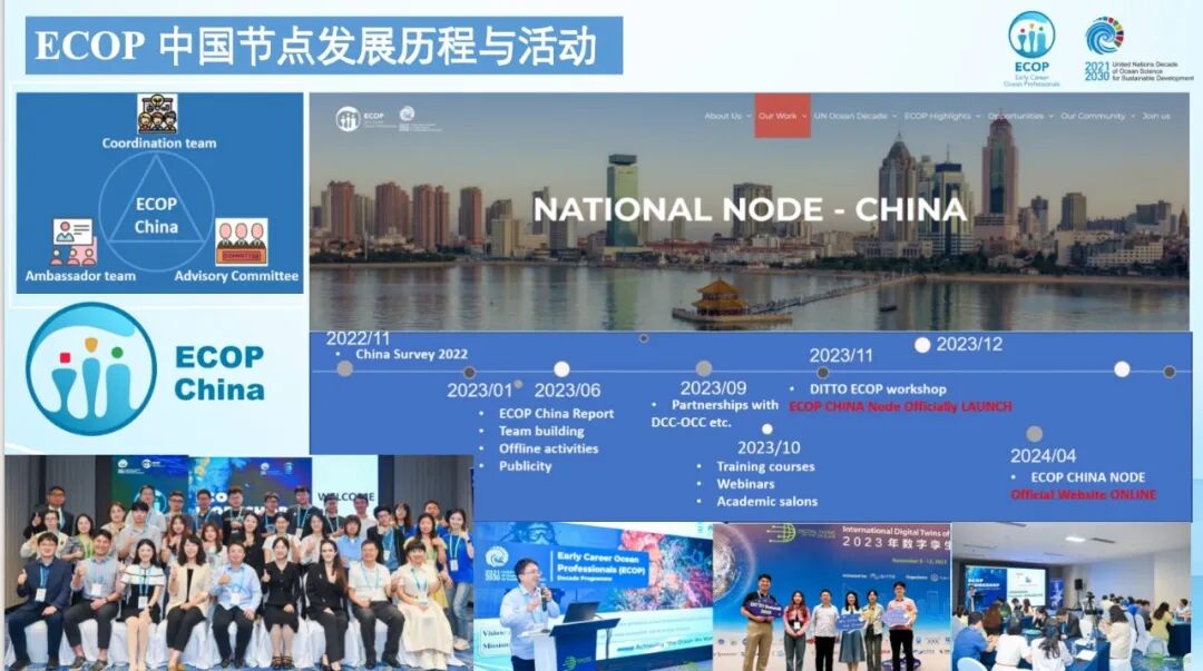 王云涛老师讲述了海洋届青年专业人员关系网络计划(ECOP)促进海洋合作的故事,并介绍了ECOP中国节点在为青年人员从事海洋科学研究、工程技术应用、环境保护修复、海洋国际交流、生物多样性保护、资源可持续利用等方面发挥的积极作用。
