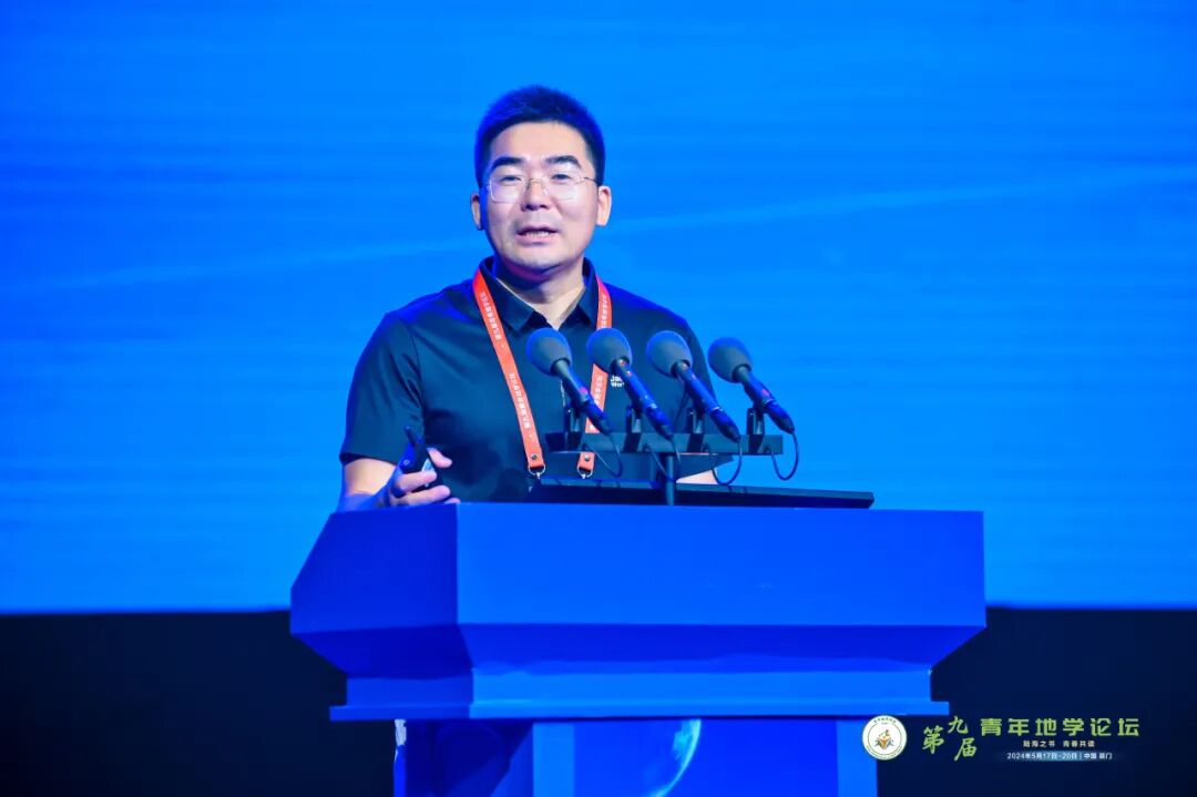 中国科学技术大学耿雷教授代表下一届论坛承办方宣讲。他表示,中国科学技术大学将于2025年接过接力棒,发挥自身学科优势,书写青年地学论坛“跨山越海,共赴星空”的新篇章。