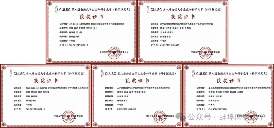 学生科创竞赛取得丰硕成果。近五年来,学生获得第十届大学生临床、护理技能竞赛银奖;第三届全国精神医学专业本科生临床技能竞赛特等奖;第八届“泰山杯”全国医学影像技术专业实践技能大赛第一名;全国大学生生命科学竞赛省级一等奖29项,其中全国竞赛获得一等奖9项,连续四年省内排名第一;第六、第七届全国医药院校药学/中药学专业大学生实验技能展示活动一等奖3项;第十七届“挑战杯”全国大学生课外学术科技作品竞赛红色专项三等奖。