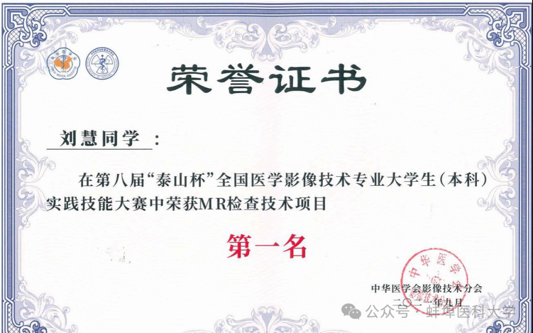 第八届“泰山杯”全国医学影像技术专业实践技能大赛第一名