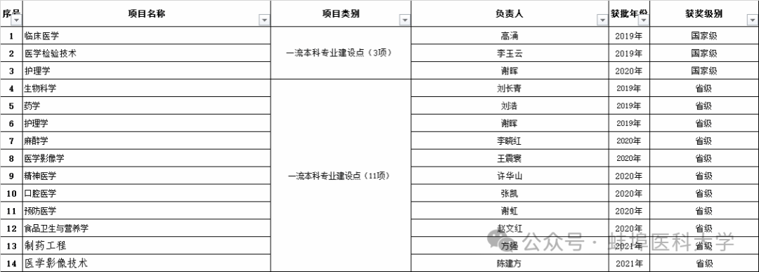 支持优势专业和新兴专业建设,强化专业评估,凝练专业特色,努力建成一批省内一流、国内知名的品牌专业。临床医学、医学检验技术和护理学专业获批国家级一流专业建设点;《护理学技能教程》获批国家级一流课程;学校获批省级一流专业建设点11个,省级一流课程156门,首次获批省级教学成果奖特等奖。