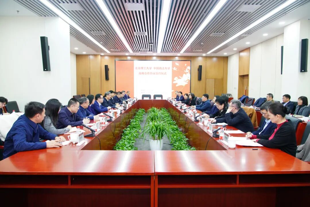 北京理工大学党委书记张军院士,校长姜澜院士,党委常委、副校长邹美帅,党委副书记杨帆,校长助理、党委常委阎艳,中国政法大学党委书记姜泽廷,校长马怀德,党委副书记王立艳,党委常委、副校长卢春龙,党委常委、副校长王敏,党委常委、副校长刘艳红出席签约仪式。签约仪式由刘艳红主持。