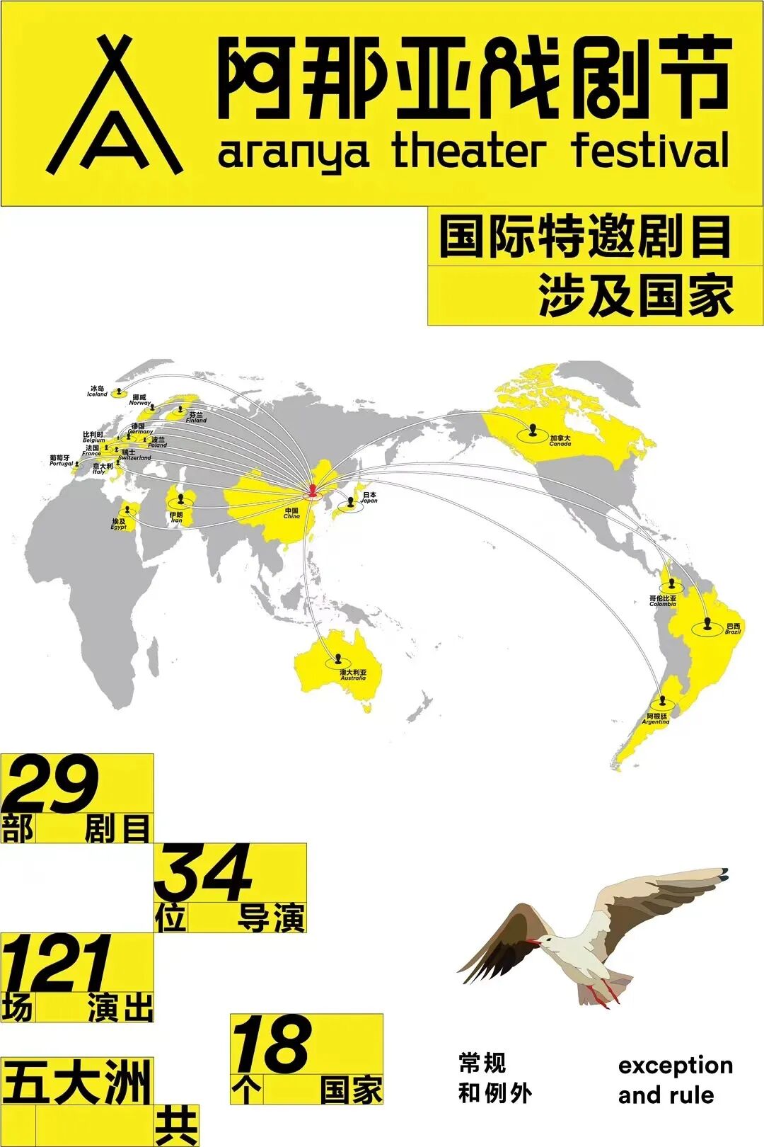 线上巡礼就此告一段落,宏大的地图已然绘于纸上,探索的第一步由你踏出。八大戏剧节九位艺术总监,全都飞到阿那亚!五洲四海,就差你了! 以“常规和例外”为主题,本届阿那亚戏剧节于2024年6月20日正式开启,从多个维度构建出广度与深度并存的艺术生活体验。是五大洲的齐聚,更是多元文化的狂欢!