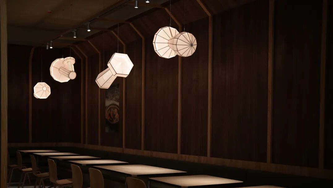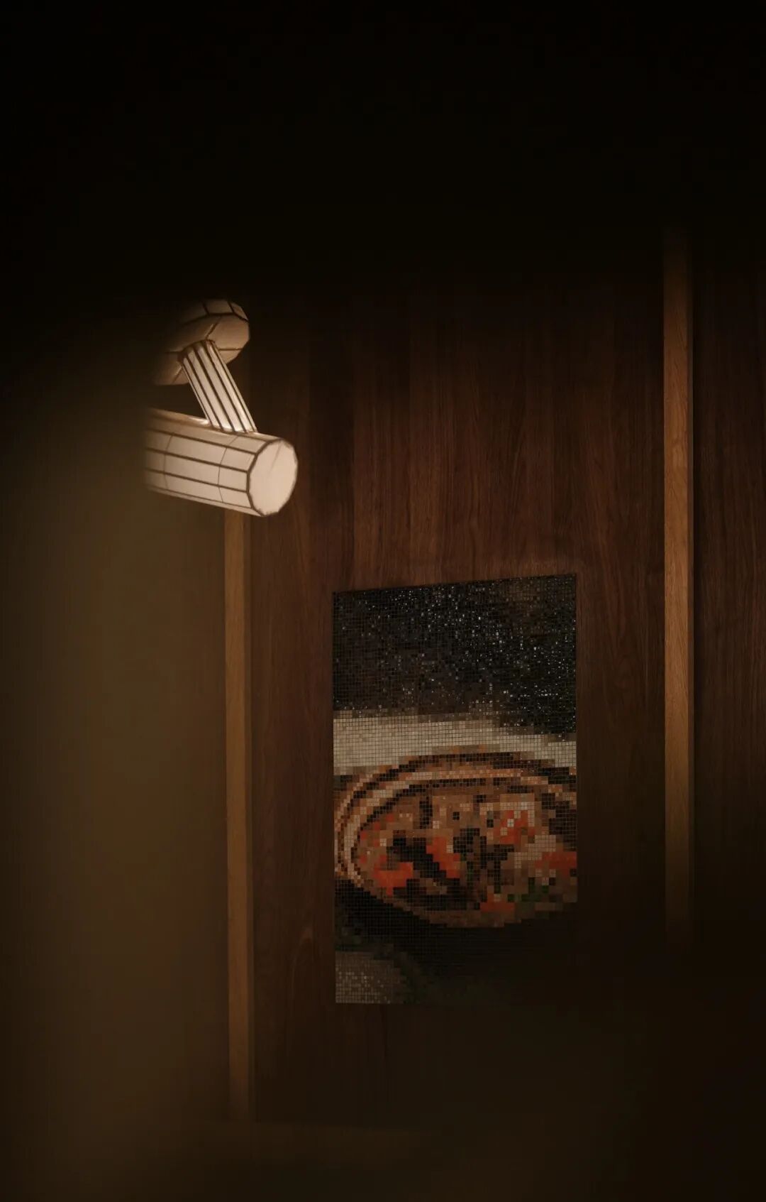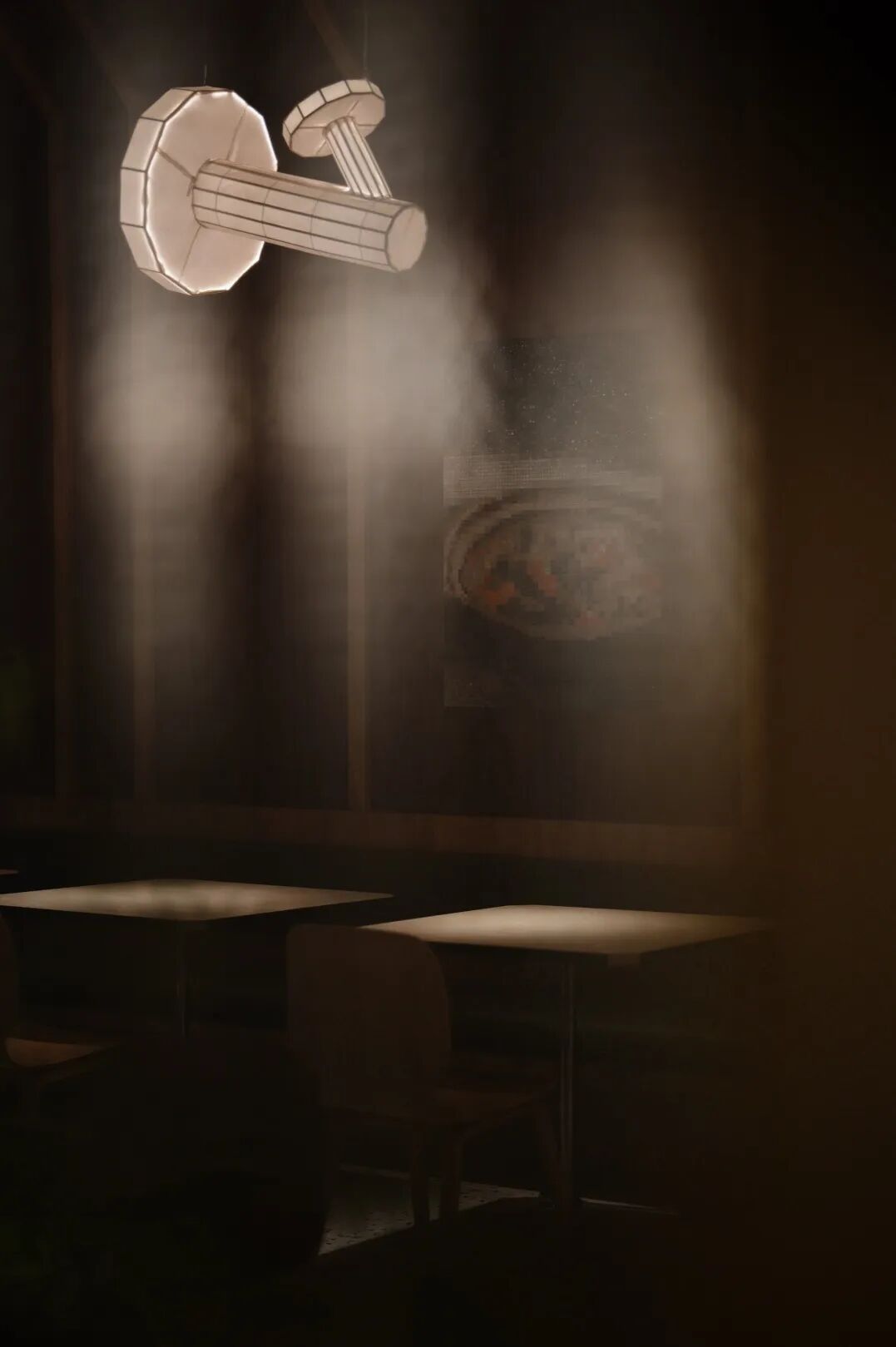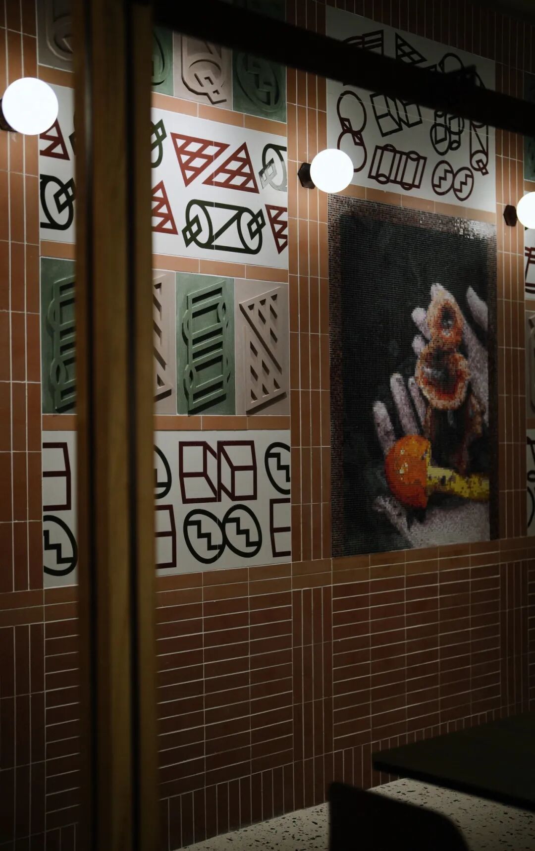新店空間裡,有一整面墻,掛著城市的灯火,山林的味道,丽江的雪山;菌子、小米辣、腊排骨;以色彩、图形的視覺符號載著雲南的文化和味道。
