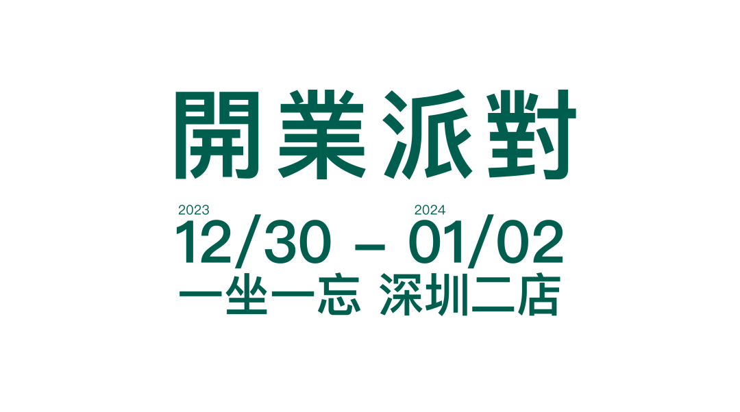時隔倆年,我們從西南到東南,從前海到福田,比起初來乍到,我們交了更多朋友,感受到了深圳的包容和活力,產生了更多的鏈接和羈絆,深圳是坐忘2023今年的crush啊,年份交接時,好事要成雙,坐忘深圳的第二家店要開業啦!