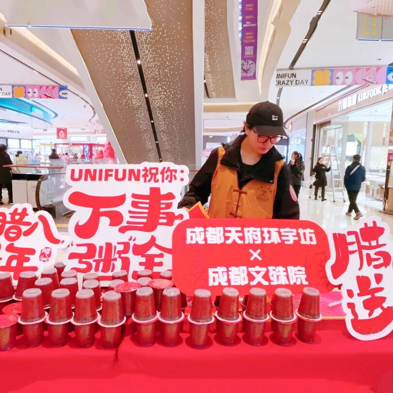 为增添节日氛围,弘扬中国传统民俗文化,成都天府环宇坊联动成都文殊院,开展暖心奉粥活动,现场人潮涌动,受到社区居民的喜爱和欢迎。