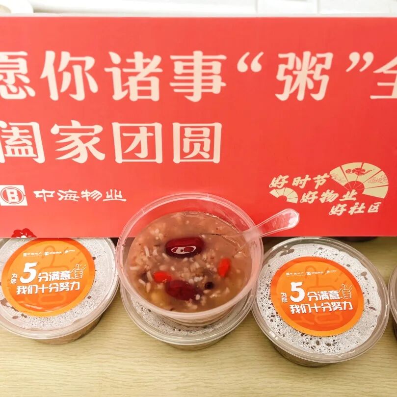 腊八节当天,我们为业主准备了暖暖的腊八粥,清晨送到业主手中,开启幸福的2025年。
