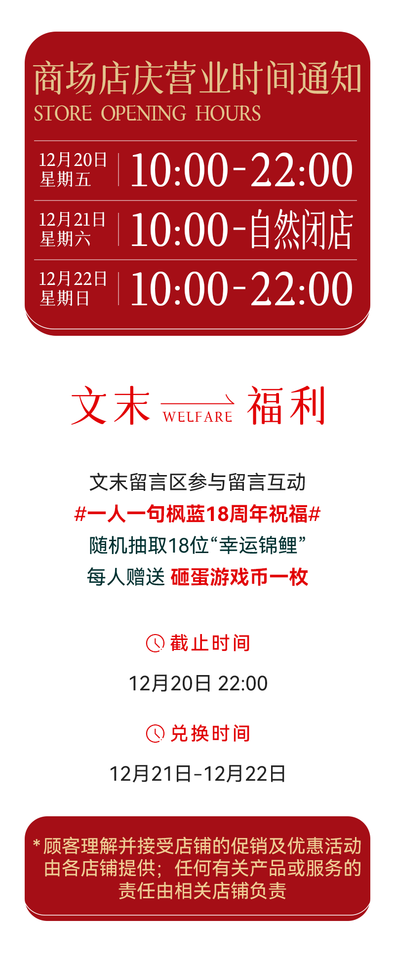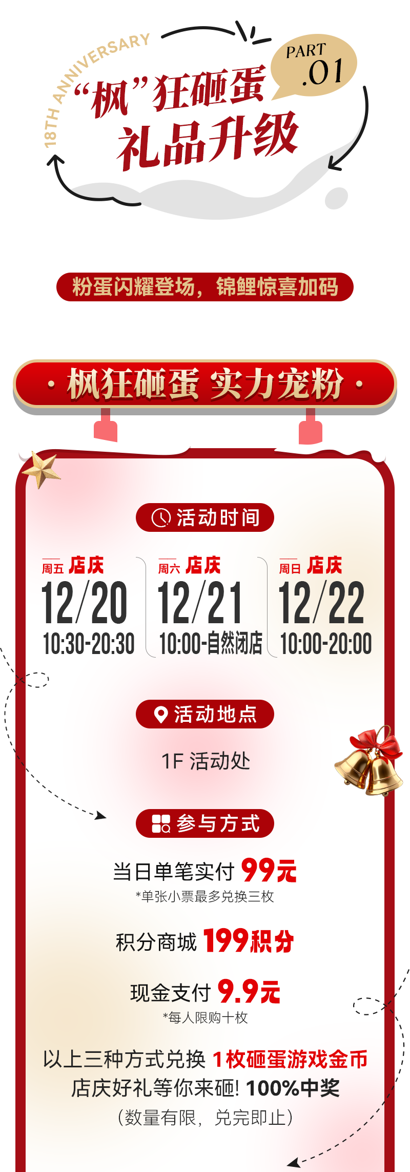 摘要:12/20-12/22,枫狂砸蛋,实力宠粉 店庆礼品升级