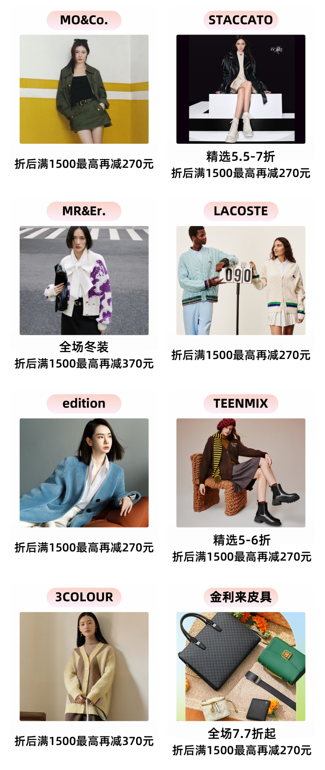 梵思诺、九牧王、ANOTHER ONE、艾诺丝雅诗..