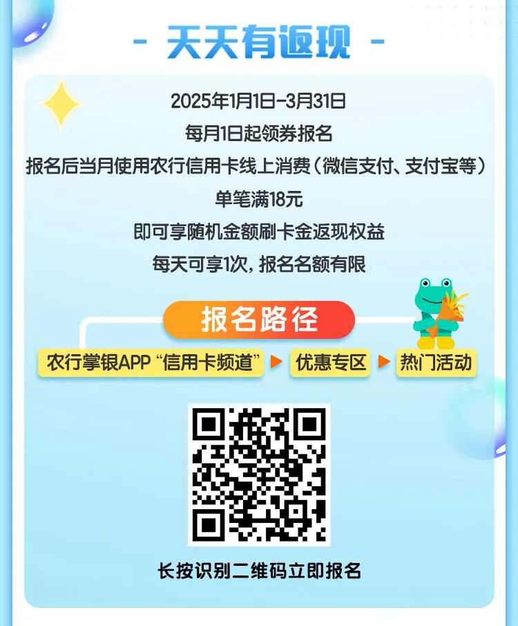 文章内容来源于公众号:农业银行信用卡,点此可查看原文,内容版权归相关企业所有,本网站仅供交流学习。若涉及版权问题或存在侵权情况,请及时与我们联系,我们将第一时间进行删除处理。