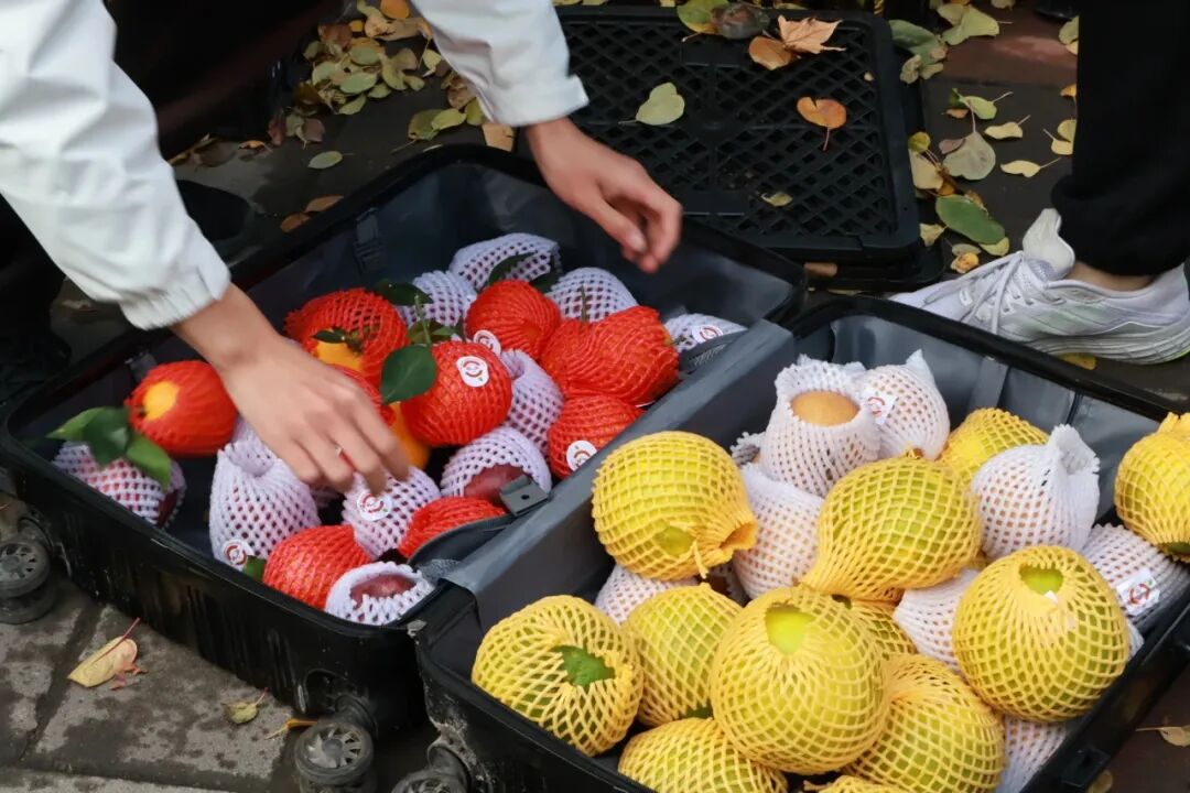 为同学们发放免费水果