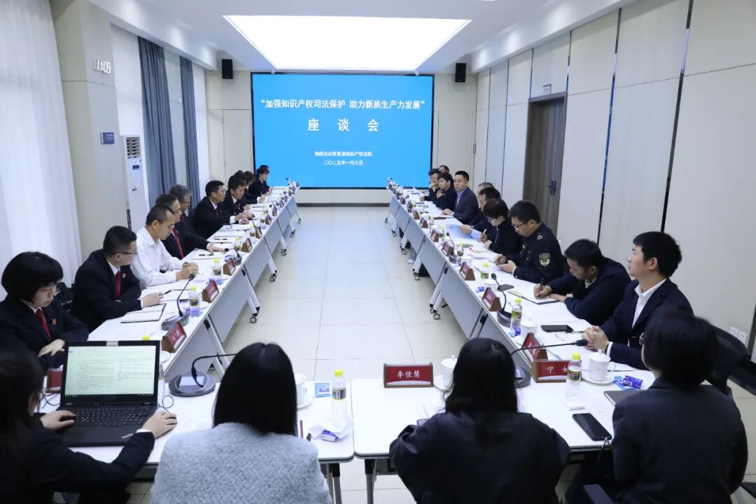 新闻发布会后,以“加强知识产权司法保护,助力新质生产力发展”为主题,接续召开座谈会。自贸港知产法院及四家承担知识产权审判职能的基层法院分别简要介绍了各自在服务保障创新、助力新质生产力发展方面所采取的措施和取得的成效。与会代表依次发言,就加强知识产权司法保护、优化营商环境、提升司法服务水平、加强交流合作等议题进行深入探讨,提出意见建议。