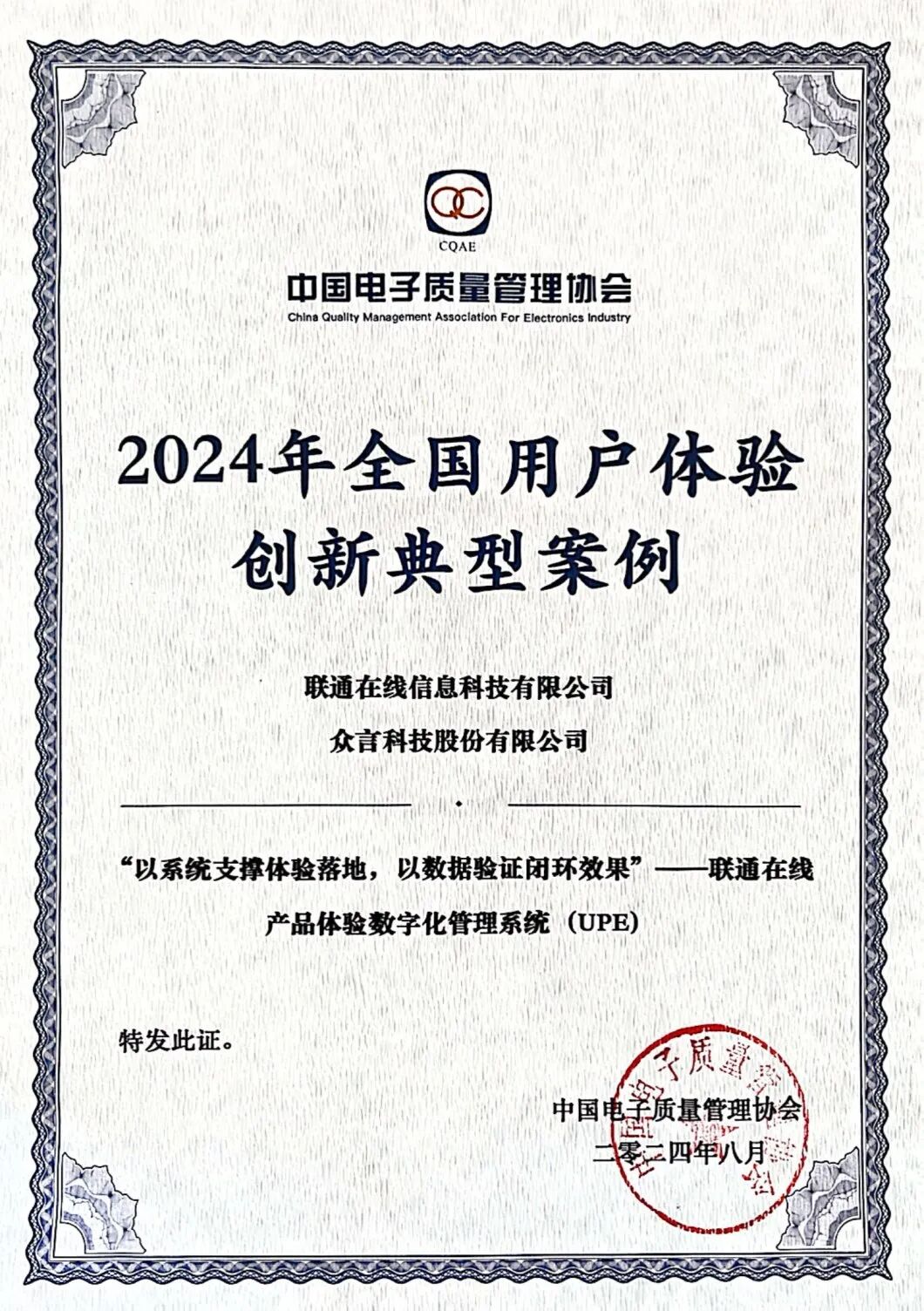 众言科技旗下数字化客户体验管理平台「倍市得」服务友邦保险、中信银行、联通在线的3个案例,均获评“2024年全国用户体验创新典型案例”。