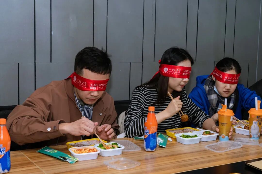 在蒙眼就餐环节,依靠方向感跟触觉,有的爱心大使甚至尚有余力可以隔着同桌,喂食其他小伙伴。