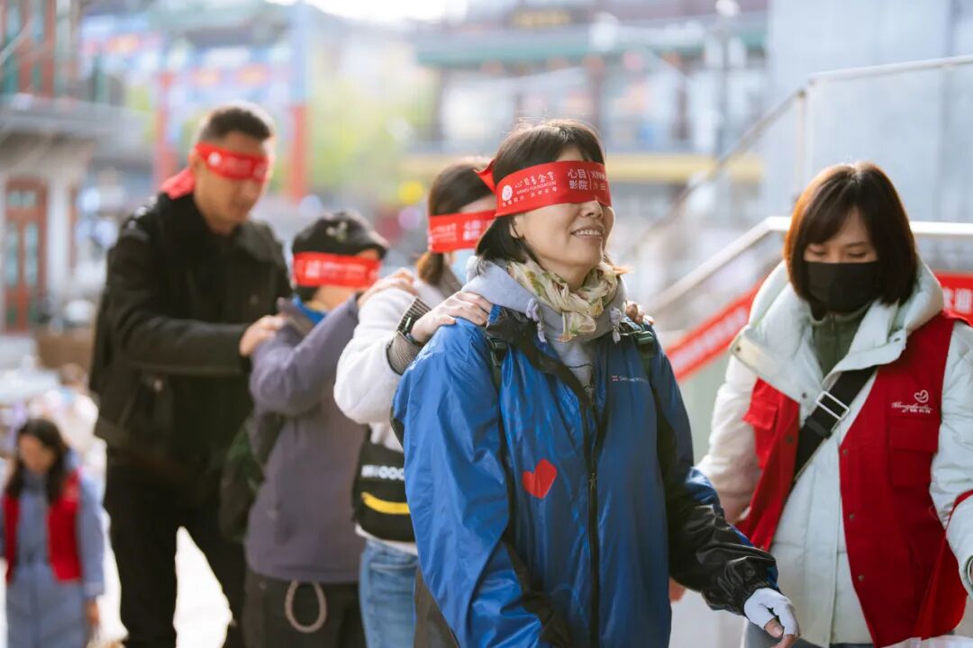 为持续开展助盲公益活动,北京爱心大使近期完成了今年第二次“蒙眼挑战”。在半天的时间里,爱心大使们用助盲丝带蒙上双眼,在黑暗中模拟视障友人日常生活中的行走于不同路况的道路,通过狭窄通道,上下楼梯与滚梯,用听力听电影,靠触觉就餐,在手机支付小卖铺饮料的费用,等等。