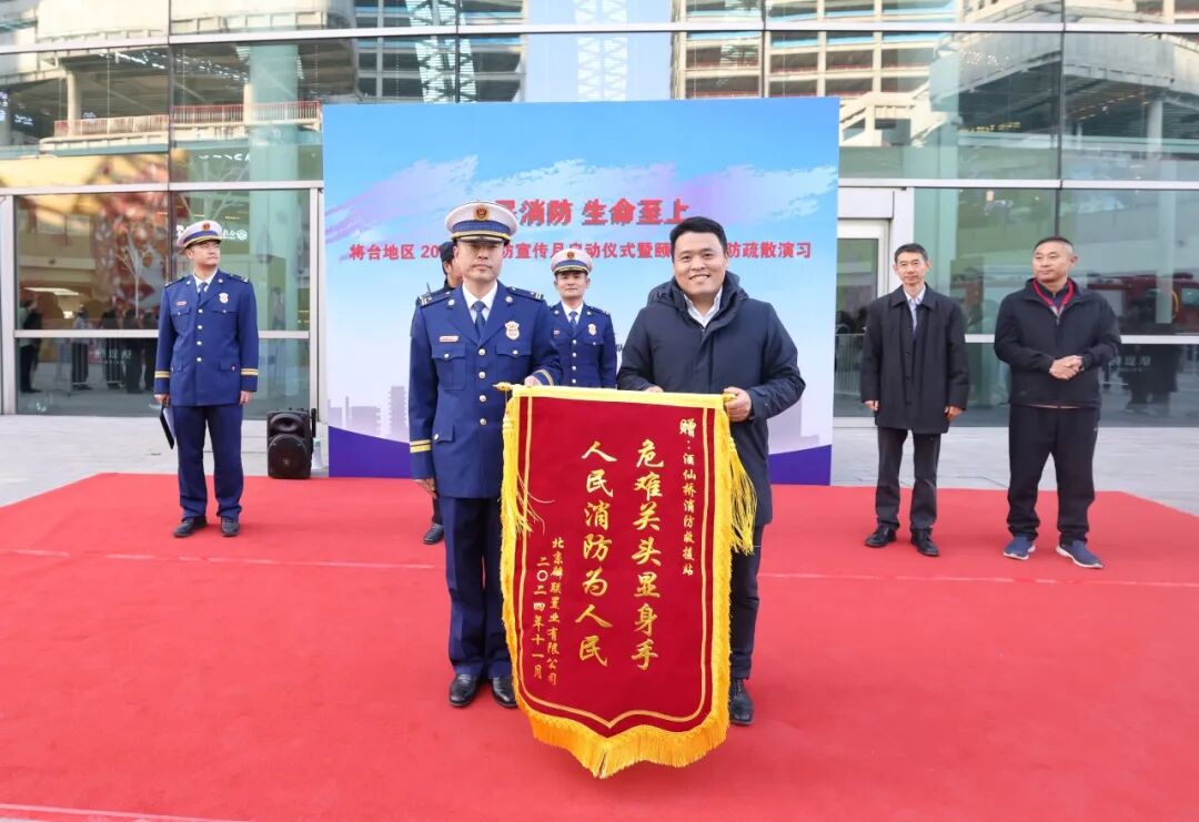 启动仪式上,将台乡政府及朝阳区消防救援支队领导分别致辞,表达了对颐堤港及大型商业综合体消防安全的重视,号召社会各界强化责任意识、共建安全环境。颐堤港总经理王天滨向消防救援队赠送锦旗,表达对坚守消防一线的救援人员的崇高敬意。