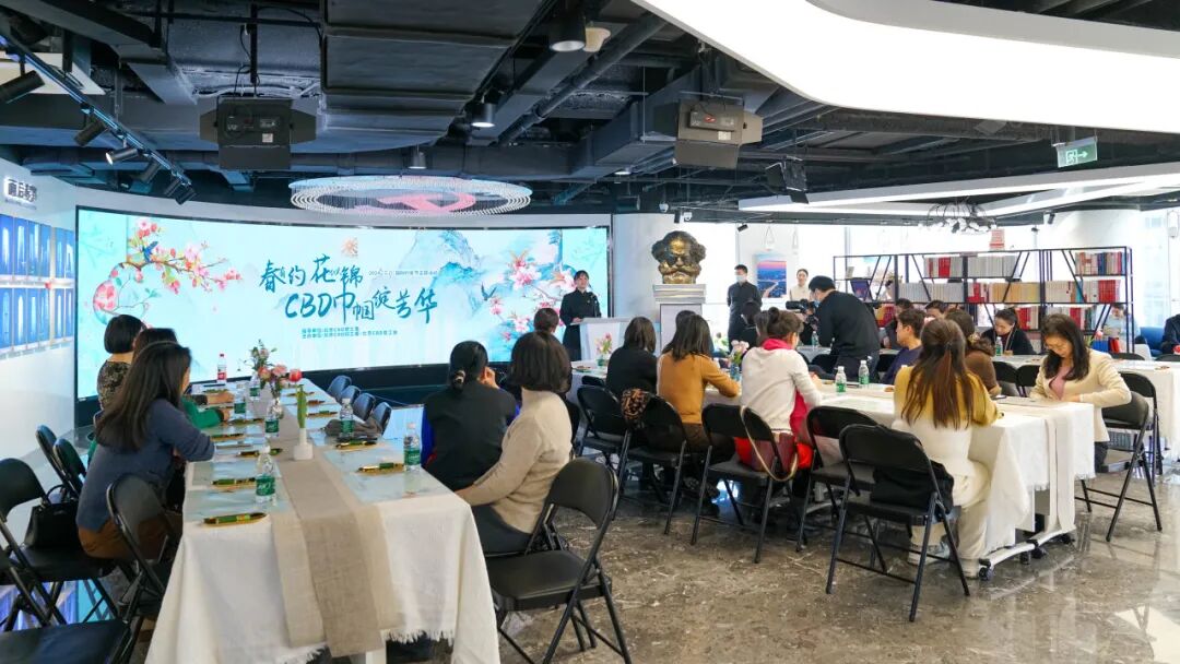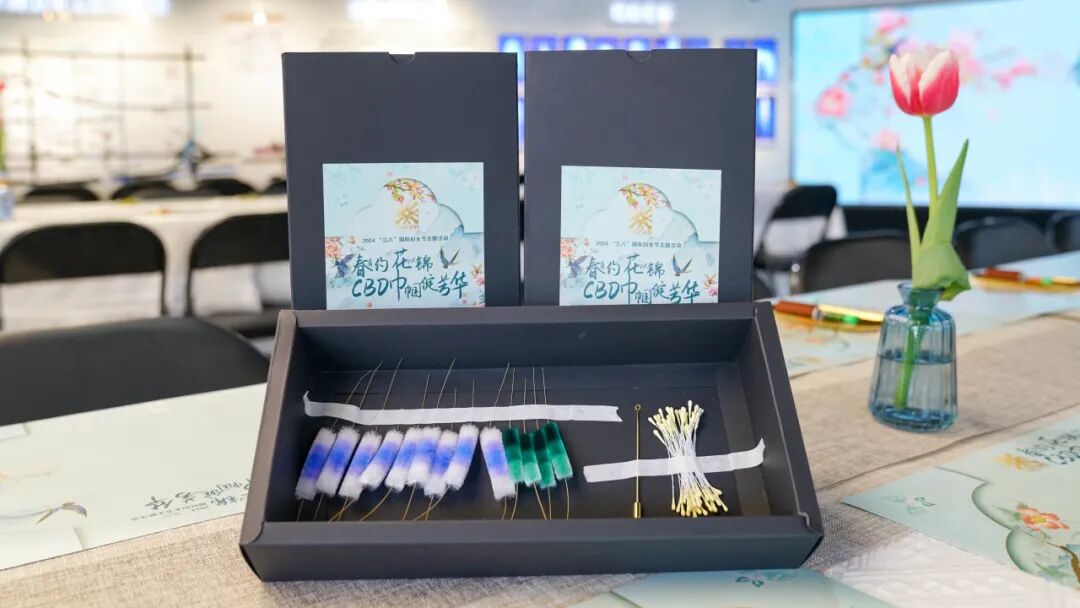 北京CBD区域内各行各业的女性相聚在白领驿站,聆听北京CBD产业政策分享会,共话北京CBD高质量发展,体验中华传统非遗文化——绒花手作。