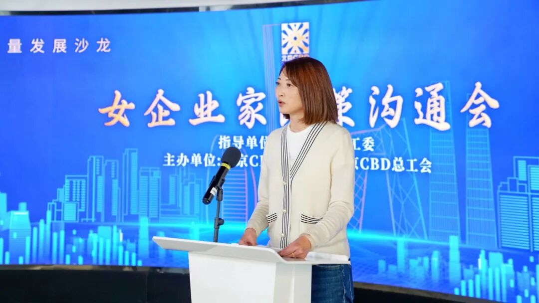 在女企业家政策沟通会上,商务中心区管委会产业一处副处长张颖宣讲产业政策。
