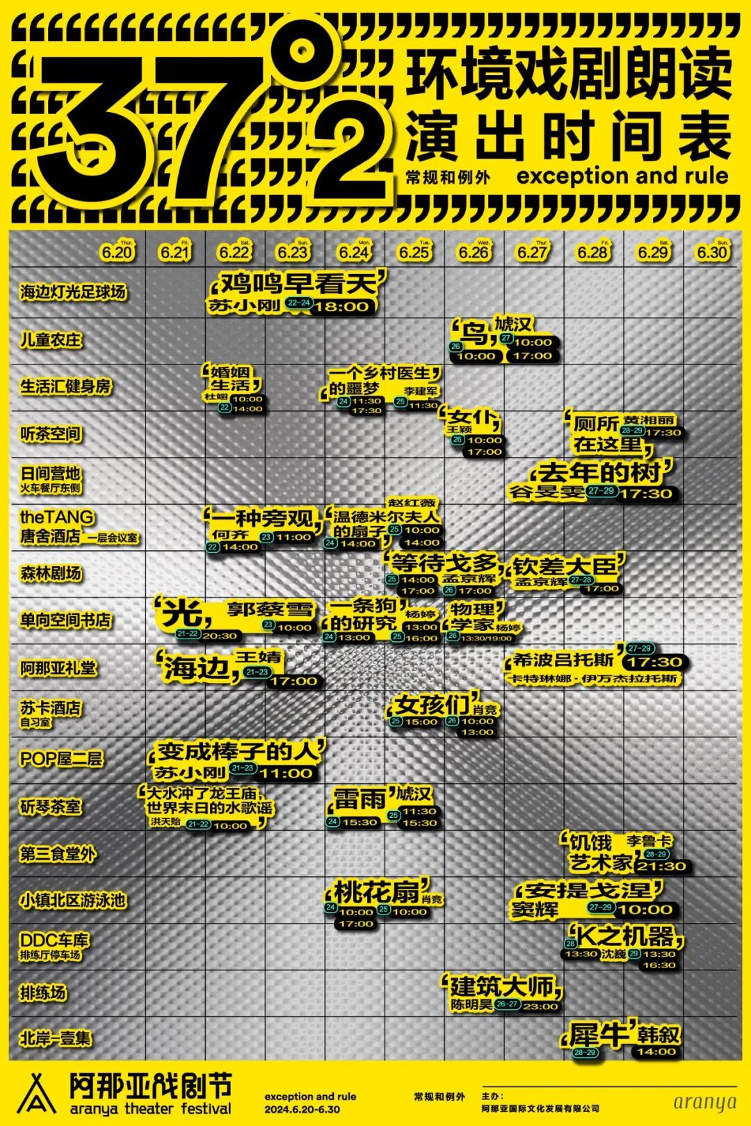 「37°2环境戏剧朗读」由阿那亚戏剧节艺术策划杨婷发起,陈明昊、杨婷、卡特琳娜·伊万杰拉托斯、李建军、黄湘丽、窦辉、苏小刚、虓汉、赵红薇、孟京辉、王婧、杜翊、谷旻雯、郭蔡雪、肖竞、何齐、洪天贻、沈巍、李鲁卡、王颖、韩叙,21位知名导演、戏剧人牵头。