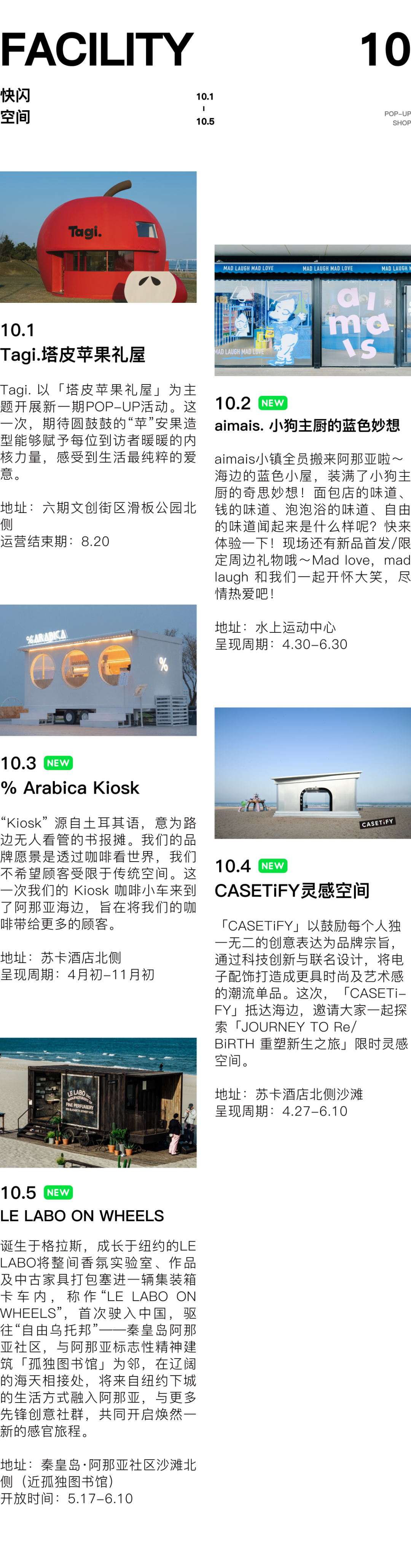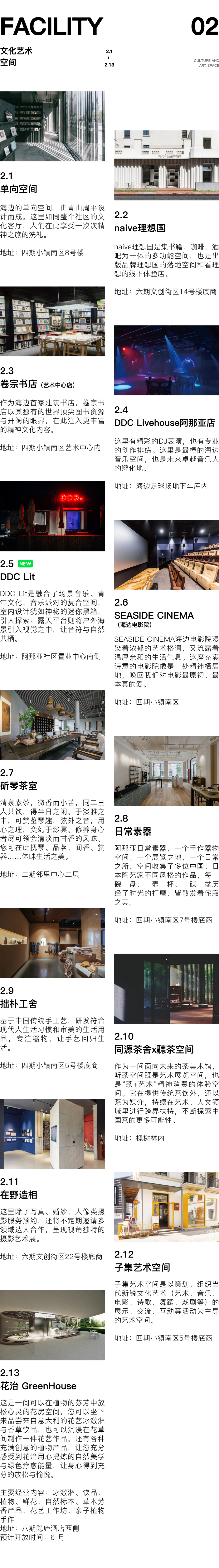 阿那亚园区的配套进行了新一轮的更新与升级。除了全新展开的北岸生活,南区的商业、日常空间也在不断自我迭代与生长,陪伴大家许久的“老地方”进行了设计焕新,更有20余家新商业品牌入驻,包括餐饮、文化艺术空间、时尚潮流店铺、快闪店,2家度假酒店在海边落脚,第九食堂迎来了第一批客人......共同为人们带来丰富舒适的全场景生活体验。