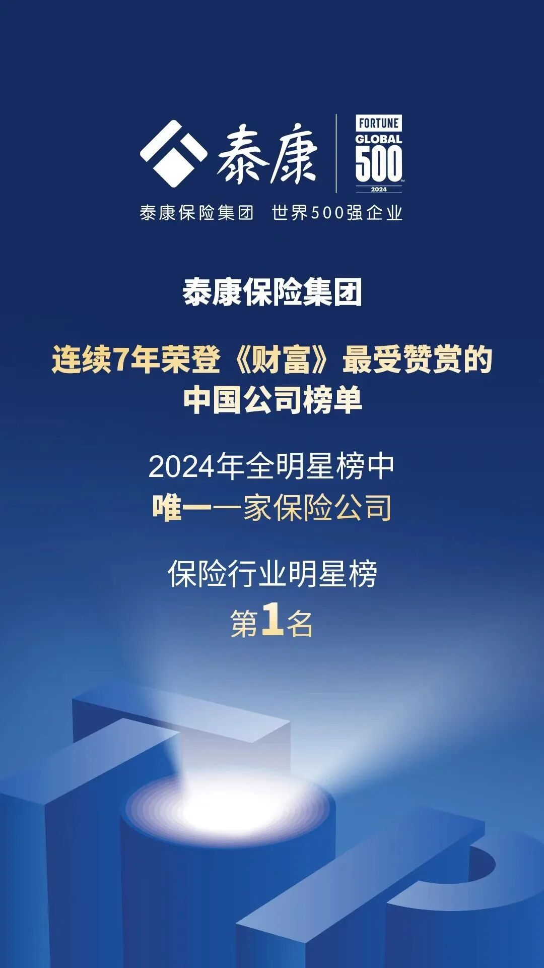 近日,《财富》发布2024年最受赞赏的中国公司榜单。泰康连续七年上榜,不仅在保险业的“行业榜”中连续名列第一,更成为全明星榜中唯一一家保险公司。